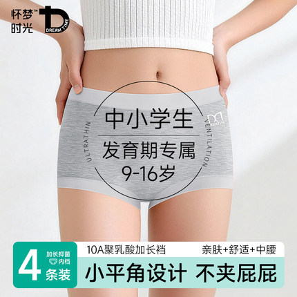莫代尔女生内裤学生少女初中生纯棉档平角裤女大童发育期四角短裤
