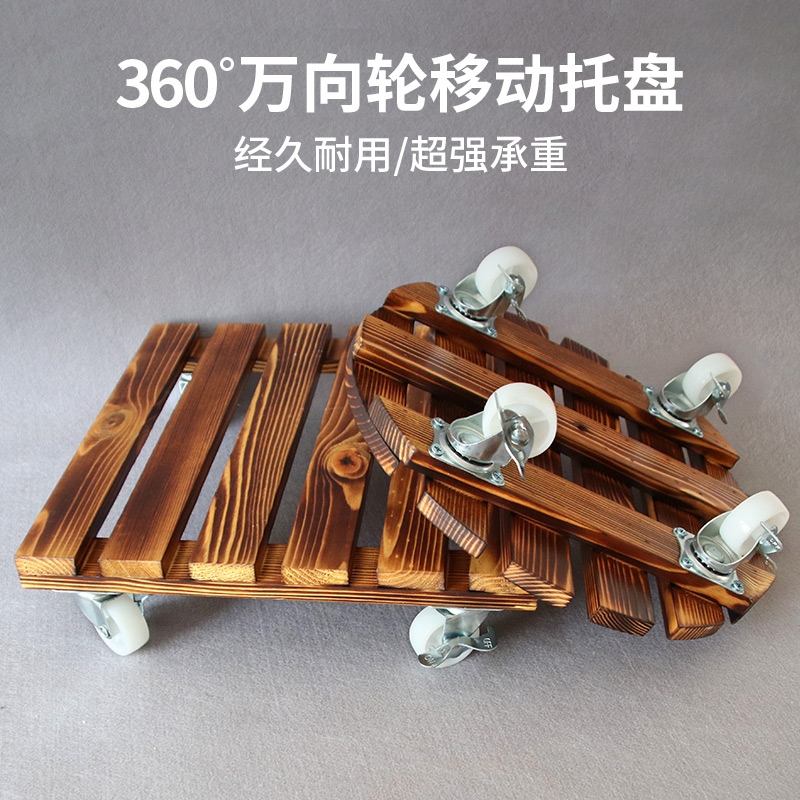花盆托盘万向轮盆景花盘实木移动底座碳化防腐带滑轮花架鱼缸托架