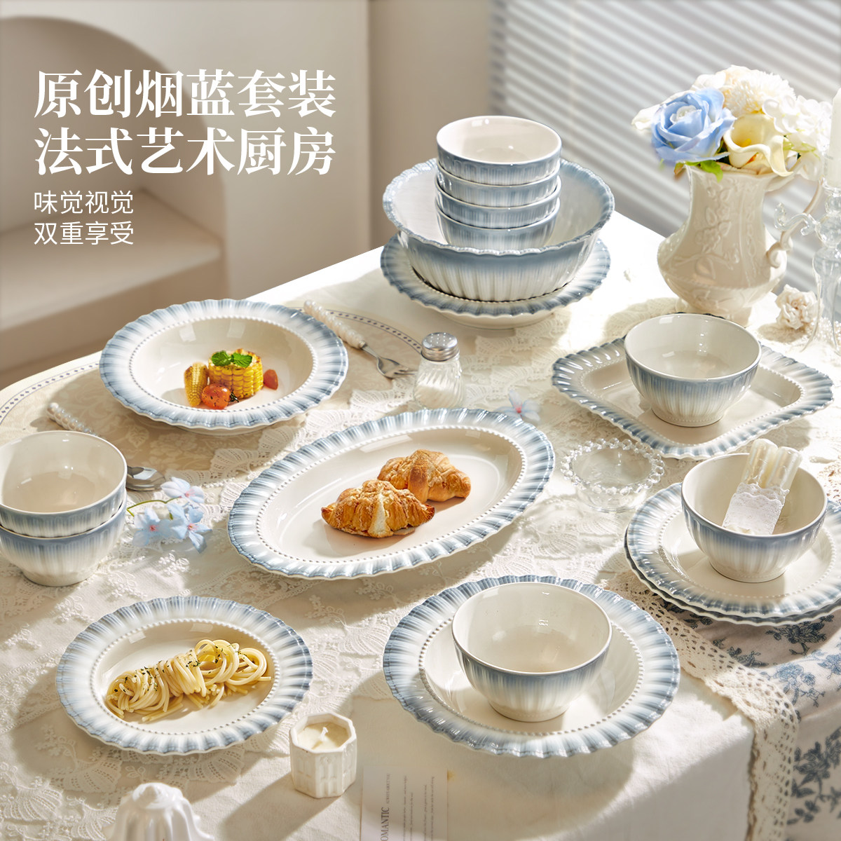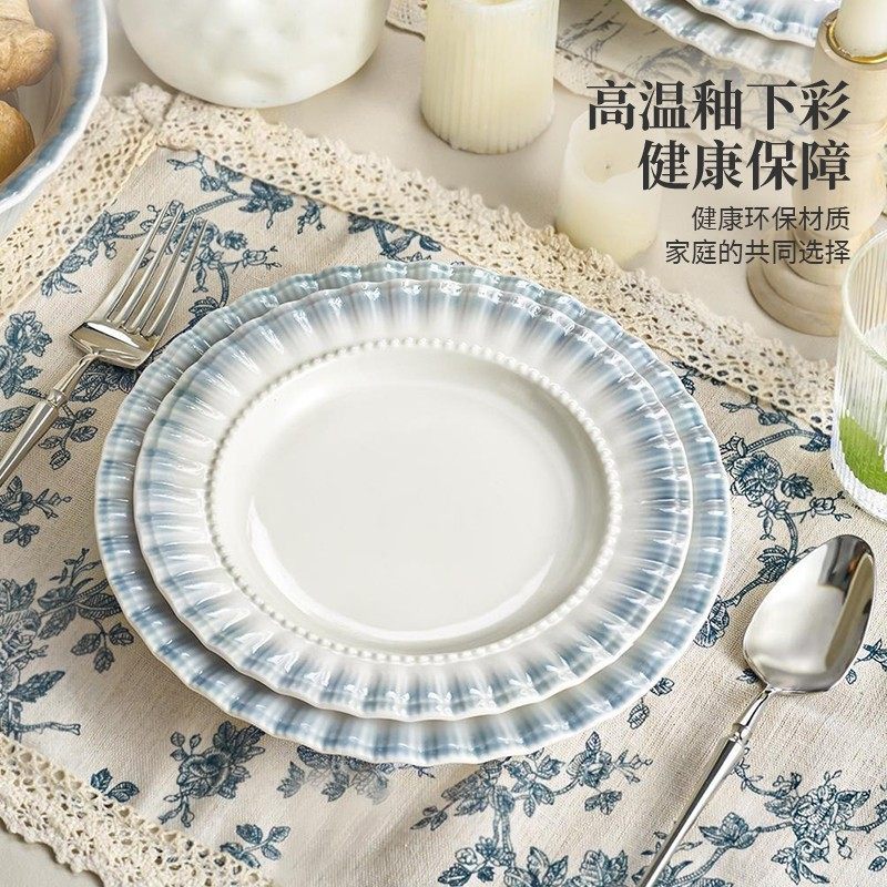 釉下彩碗碟套装家用2025新款高颜值陶瓷碗盘法式餐具套装乔迁碗具
