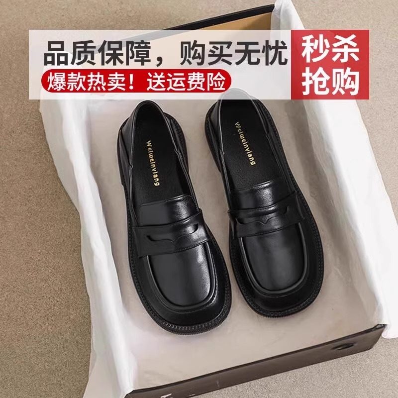 品牌特价软真软皮小皮鞋女2024春季新款平底黑色单鞋休闲工作鞋女