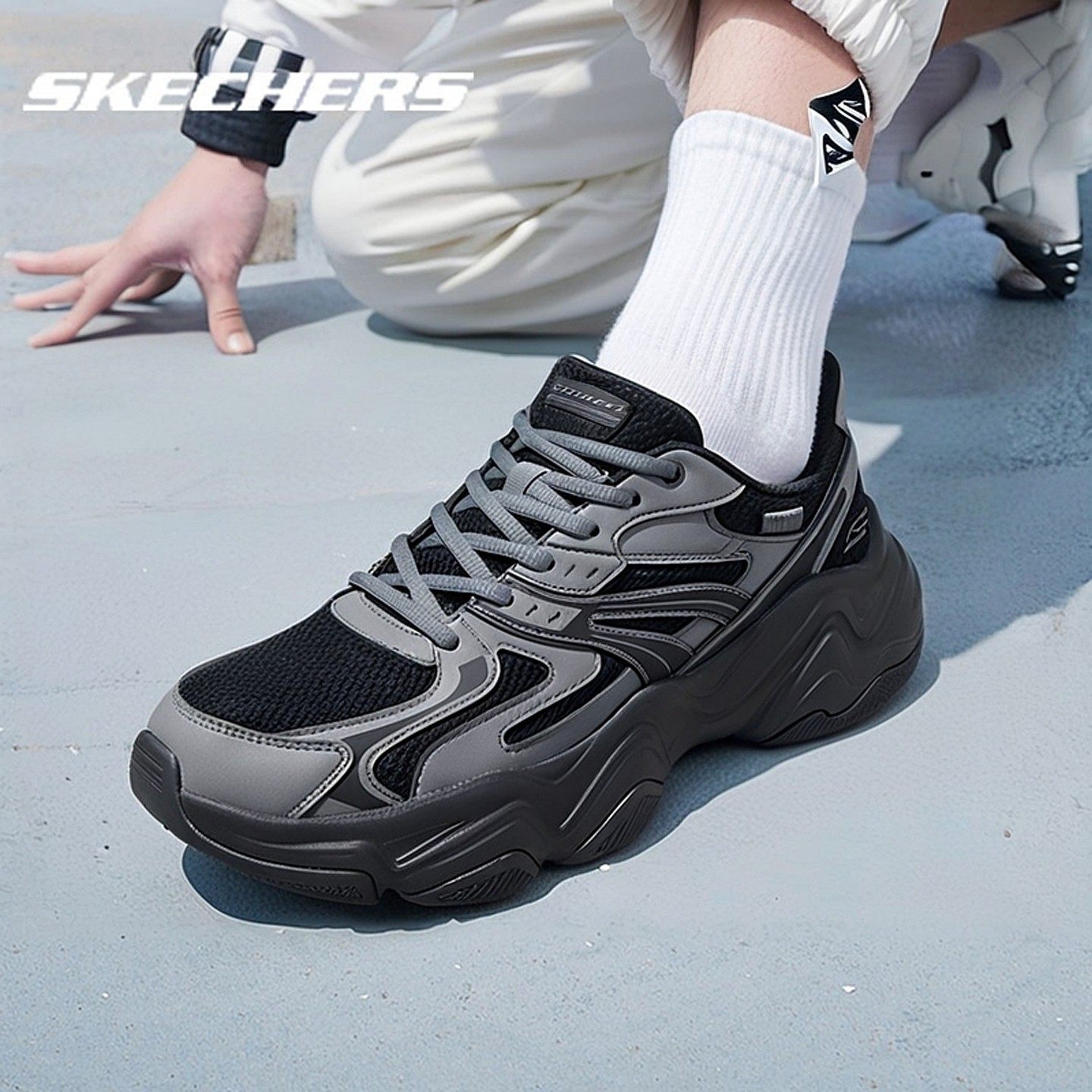 斯凯奇老爹鞋男鞋26新款春季运动鞋时尚厚底轻便黑武士休闲跑步鞋