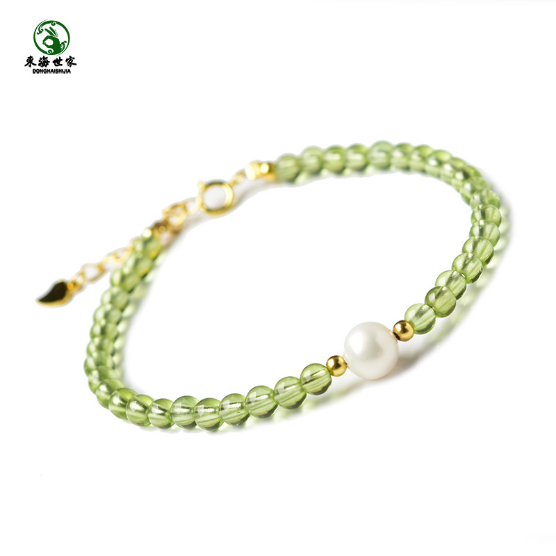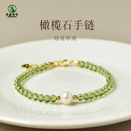 橄榄石手串女男东海水晶玛瑙翡翠玉石散珠子绿色宝石珍珠单珠手链