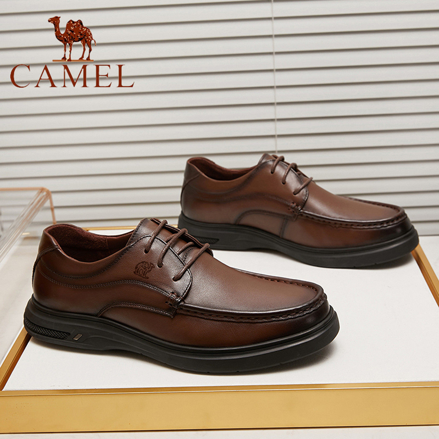 Camel/骆驼男鞋真皮皮鞋2025新款系带软底软面牛皮透气商务休闲鞋