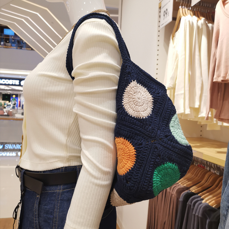 秋款撞色圆圈菜篮子包单肩手提毛线编织包手工diy材包教程