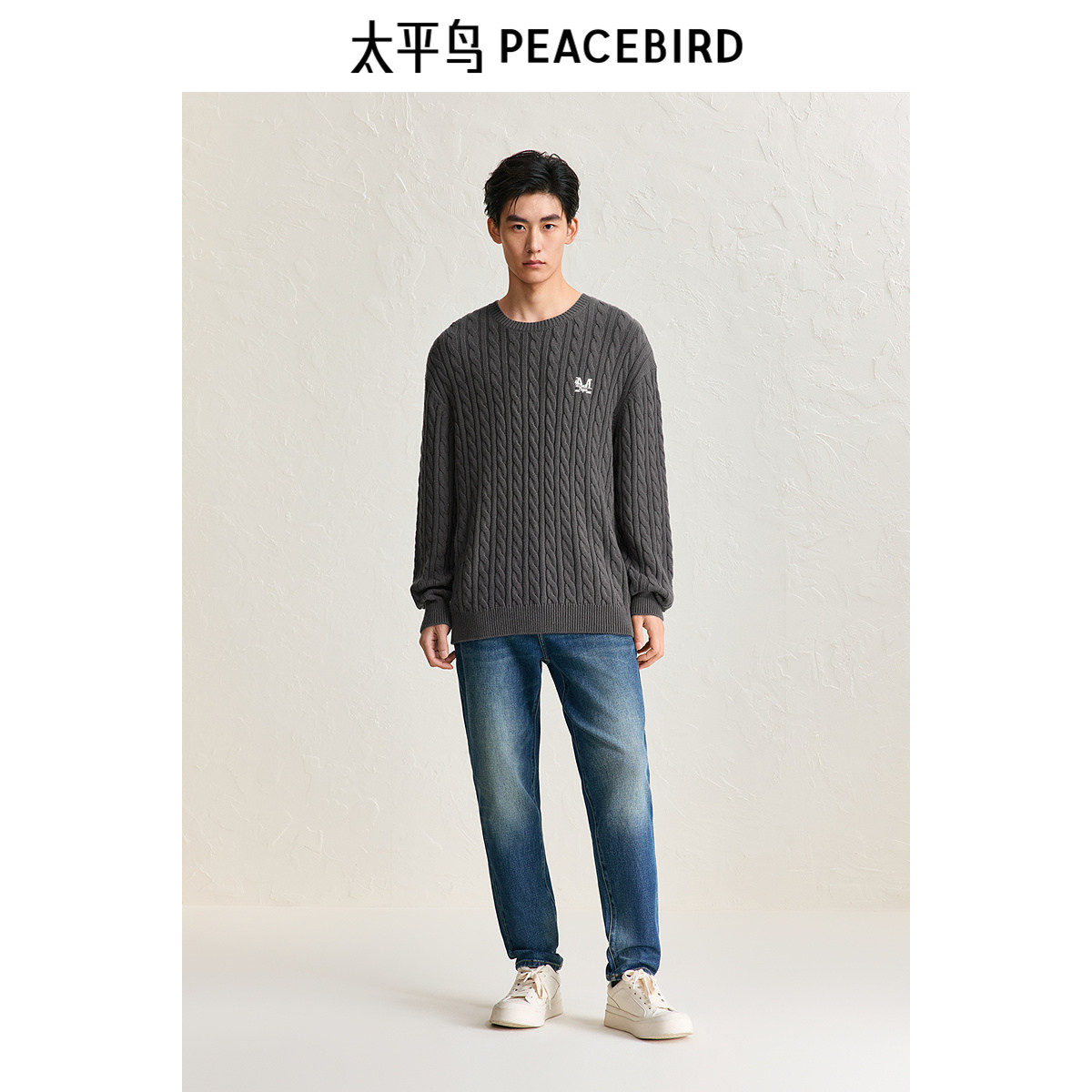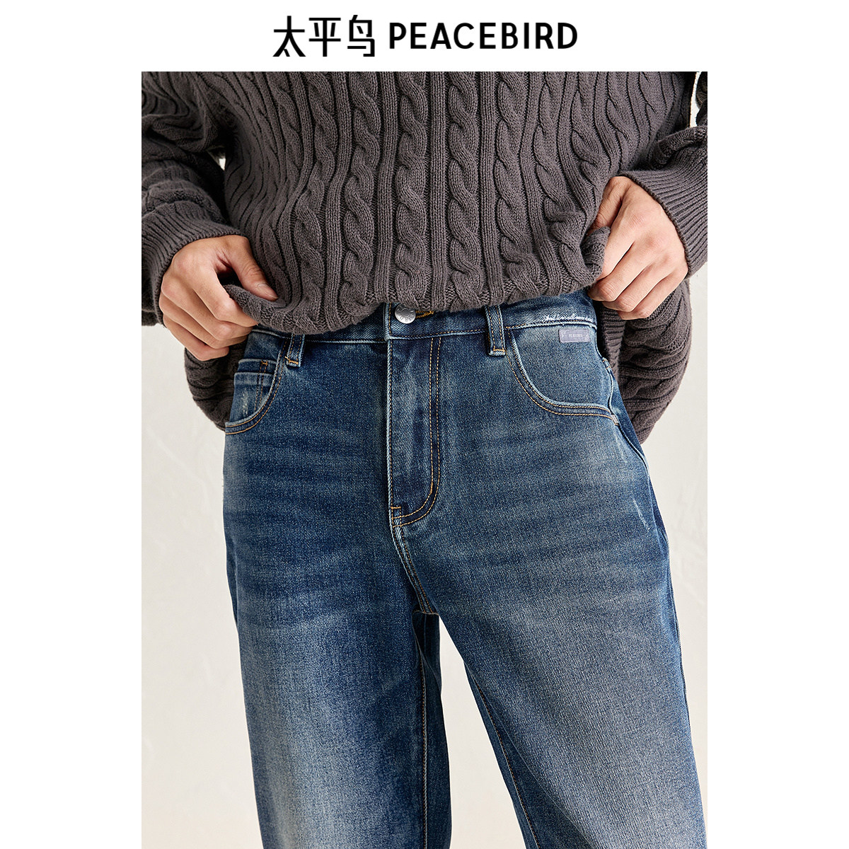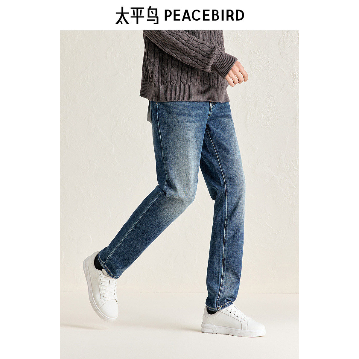 【断码钜惠】【温芯棉】太平鸟男装牛仔裤冬季修身水洗保暖牛仔裤