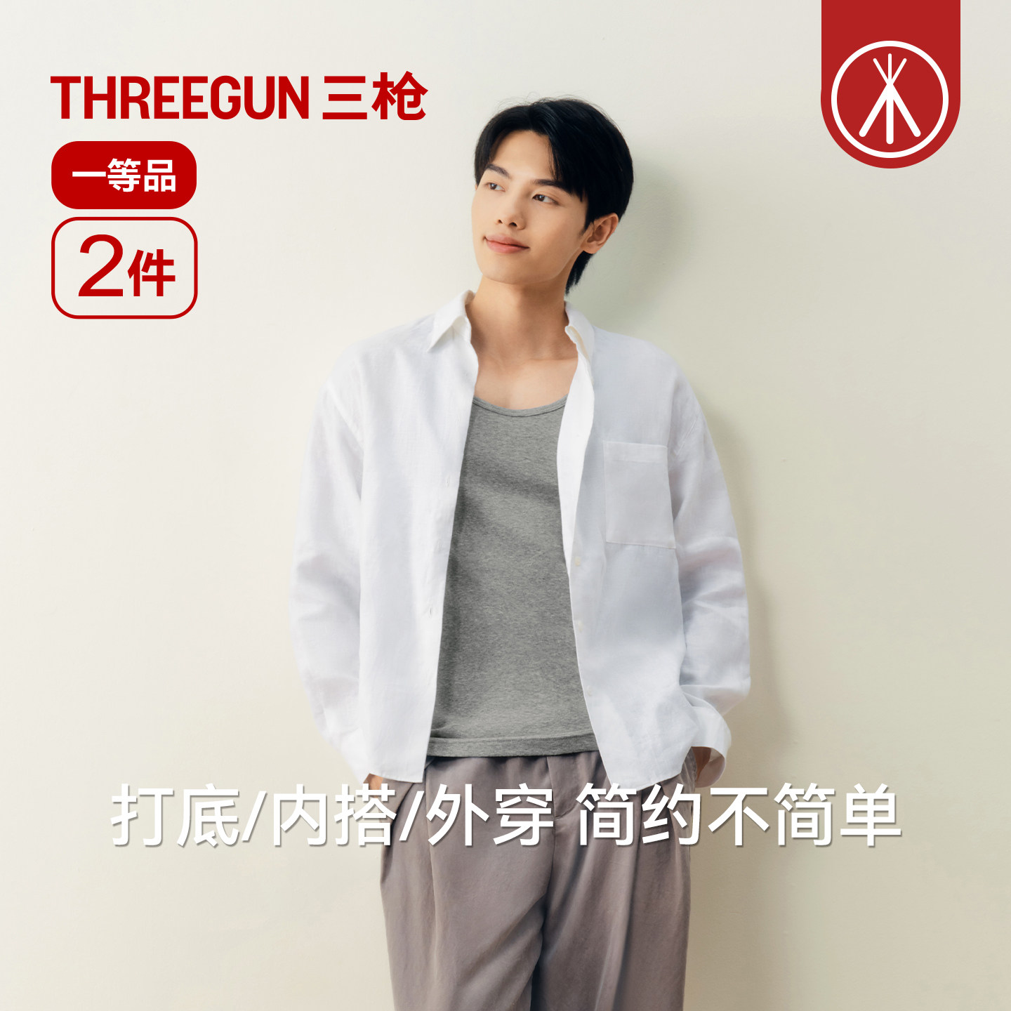 [2/4件]三枪男士背心纯棉透气运动健身无痕秋冬打底抗菌白色汗衫