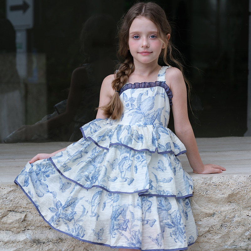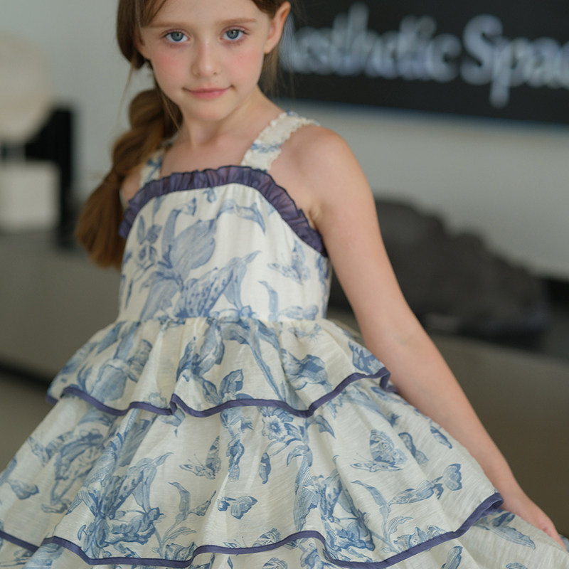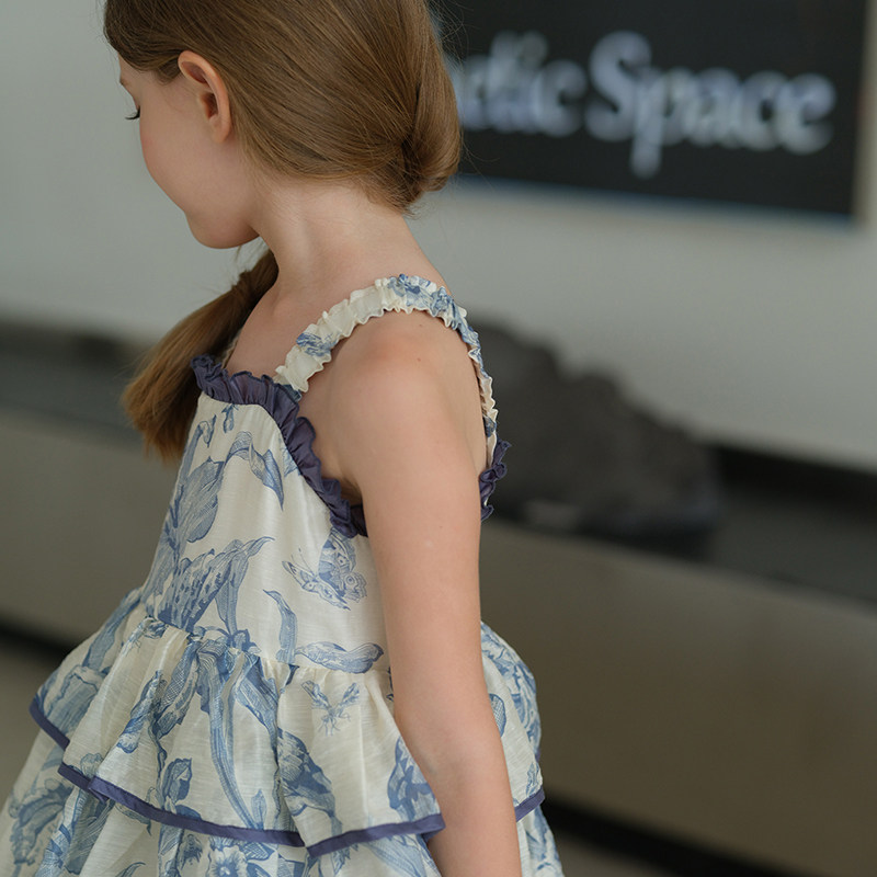 PISELLI史豌豆女童水墨花吊带裙2025夏季新款中大童背心连衣裙