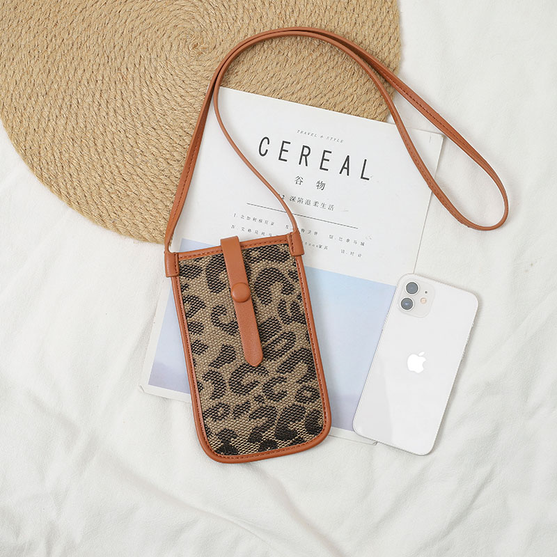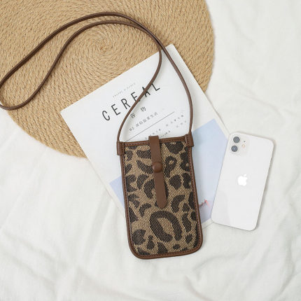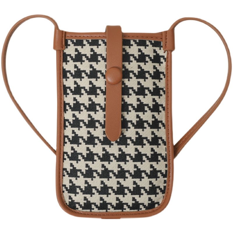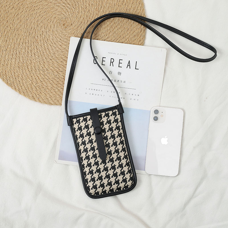 千鸟格豹纹帆布装放手机包袋小众高级感竖型迷你小包包女轻便斜挎