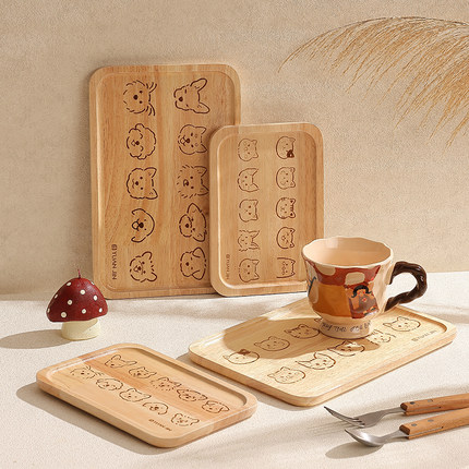 喝茶茶具托盘长方形餐盘纯木茶盘仪式感早餐盘高颜值水果盘蛋糕盘