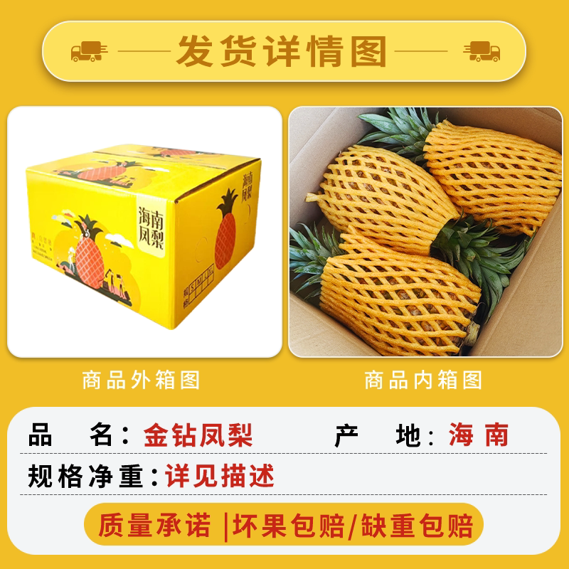 【中果农茂】海南金钻凤梨新鲜水果2.5斤脆甜当季整箱菠萝批发