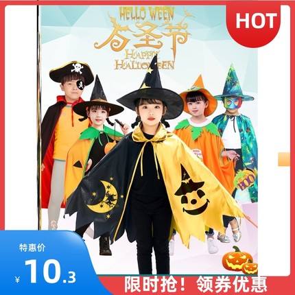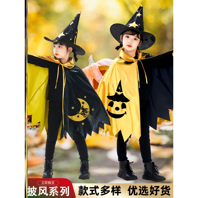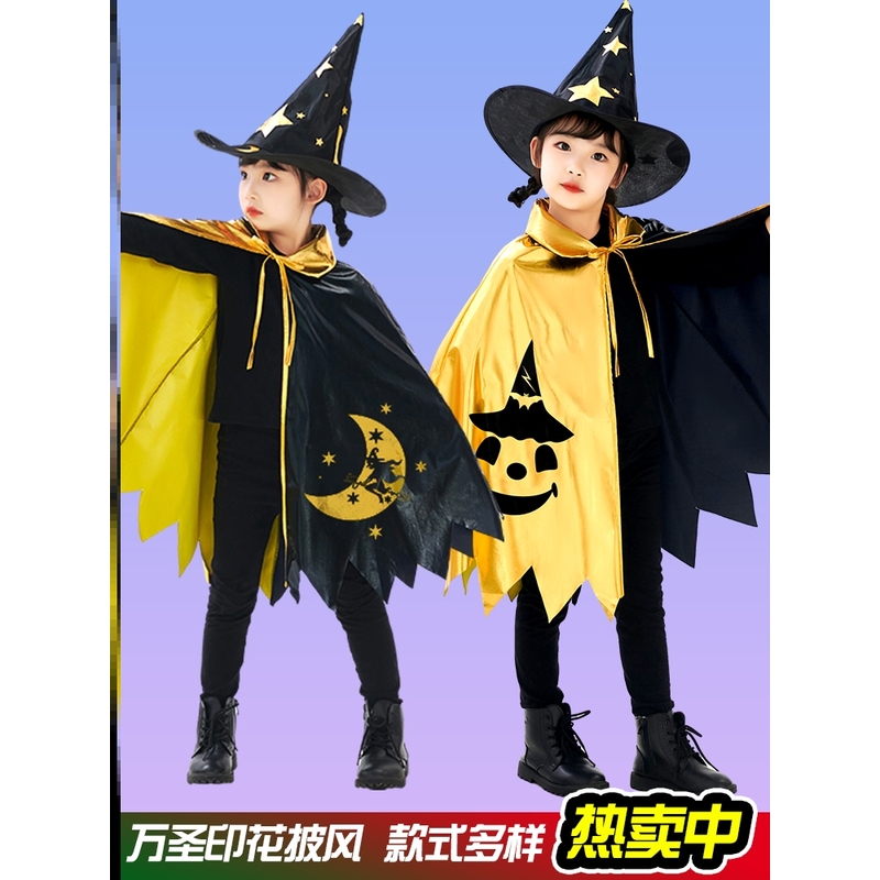 儿童万圣服披风男女童表演出魔法师巫婆斗蓬套装幼儿园魔仙服饰