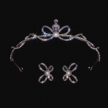 喜看精致法式水钻皇冠耳饰套装新娘结婚生日领证礼服婚纱盘发配饰