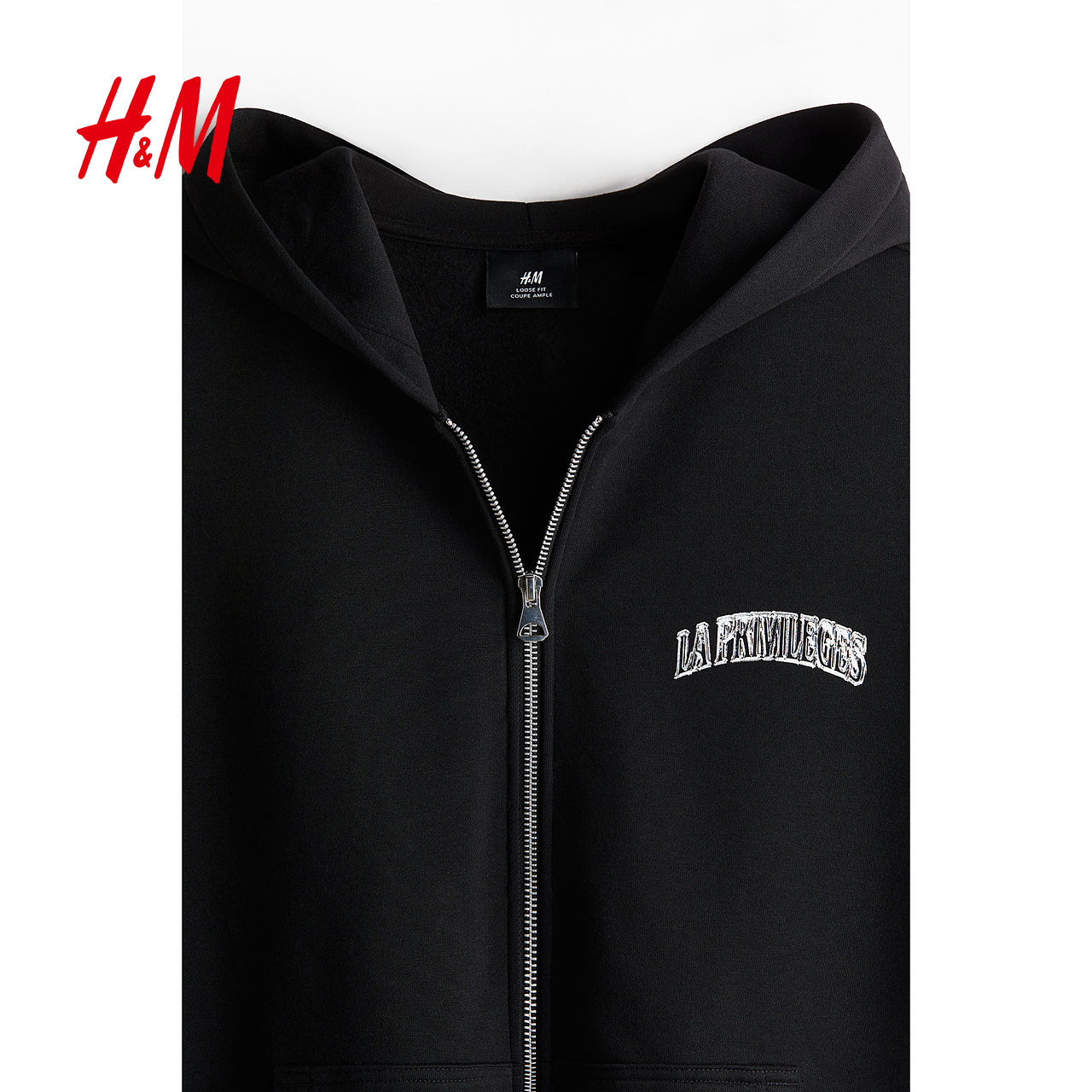 HM男装女装卫衣秋季加绒宽松美式运动风户外情侣连帽开衫1199888