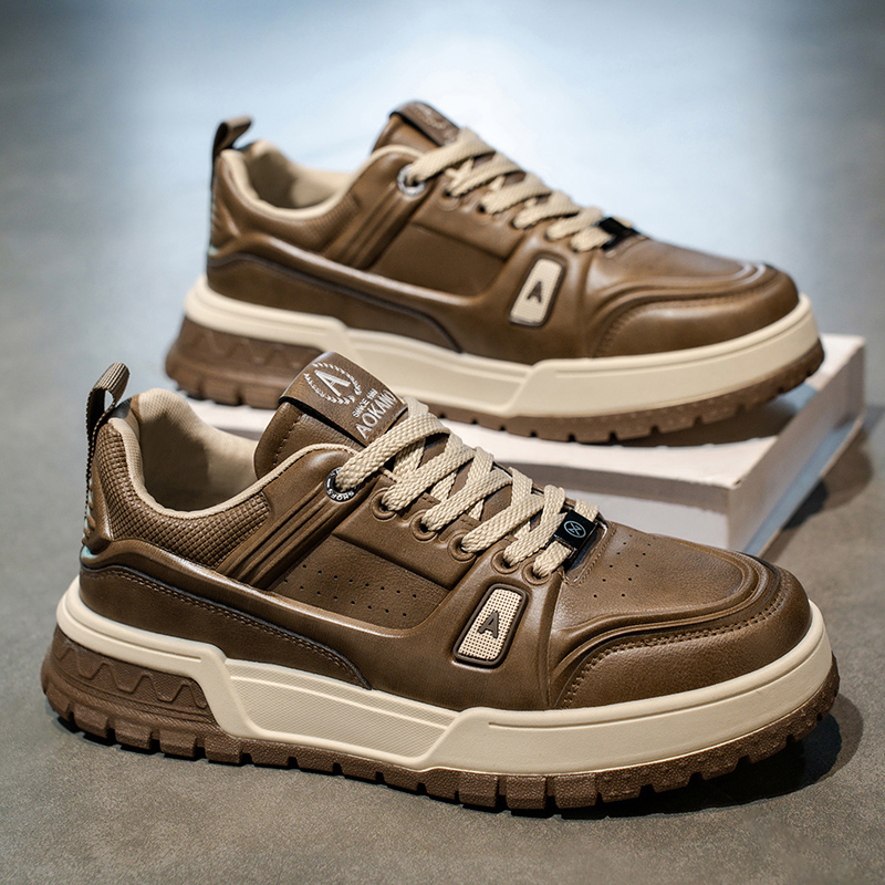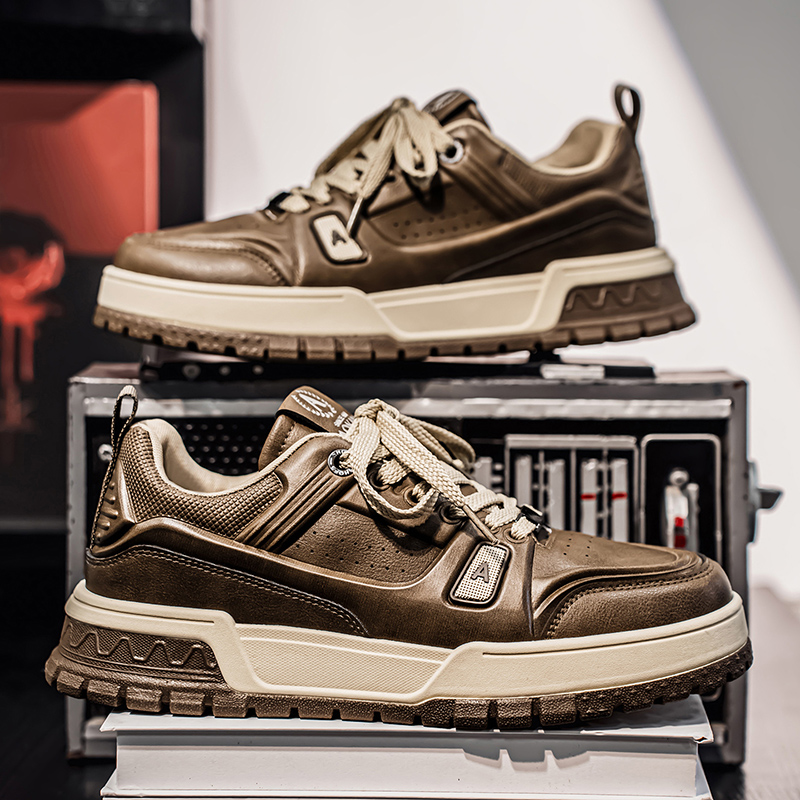 莆田男鞋2025新款秋冬青少年复古厚底增高皮面高级感休闲运动板鞋