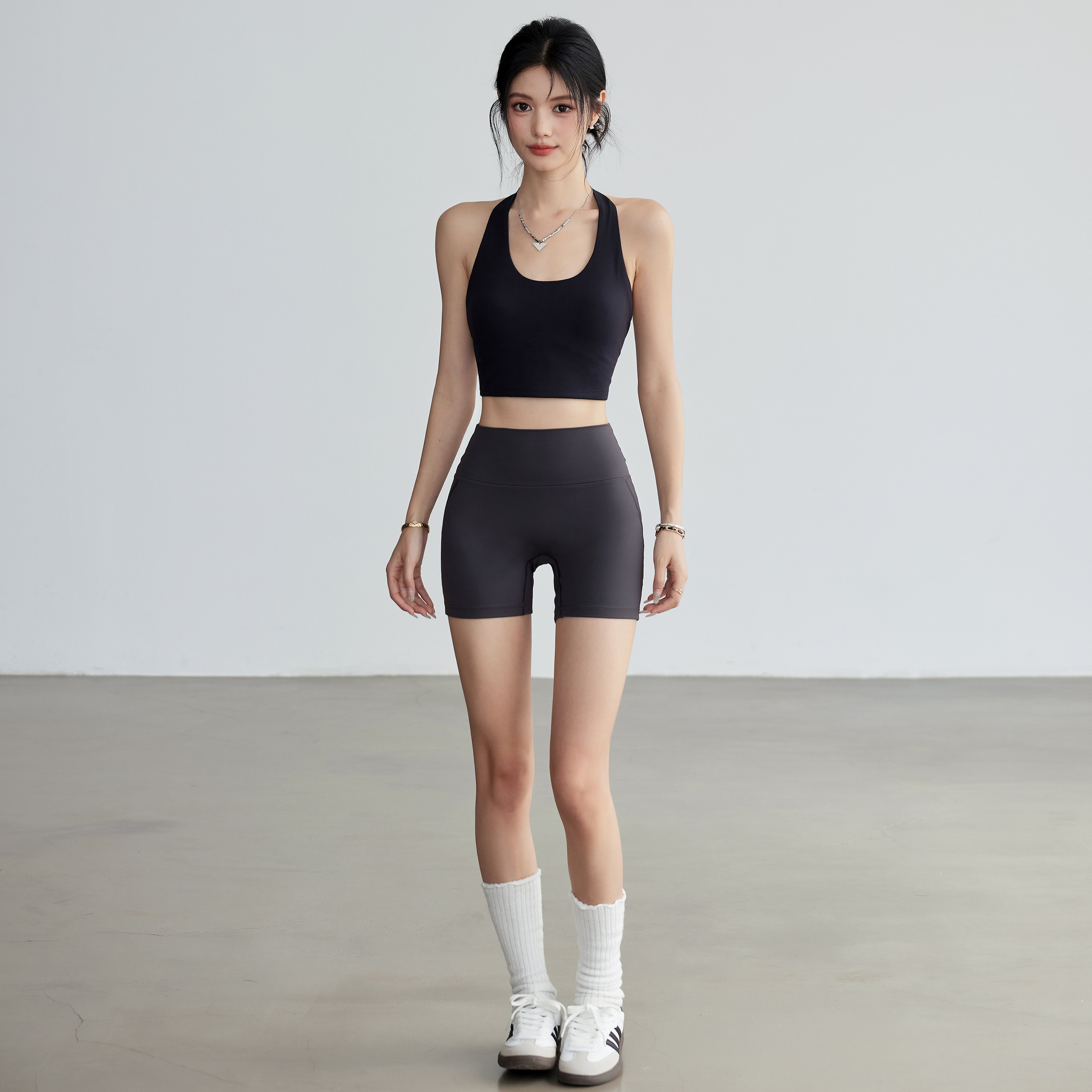 岚纹美背运动内衣女夏季防震挂脖文胸健身套装瑜伽跑步普拉提背心