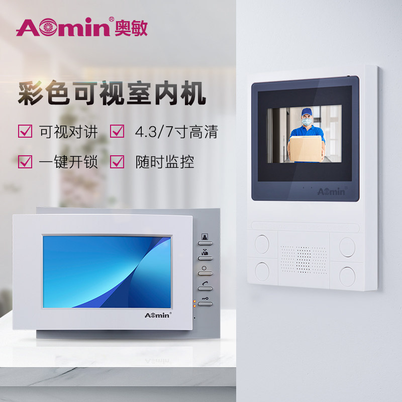 奥敏可视楼宇门铃对讲机系统门禁家用电话监控室内机分机带显示屏