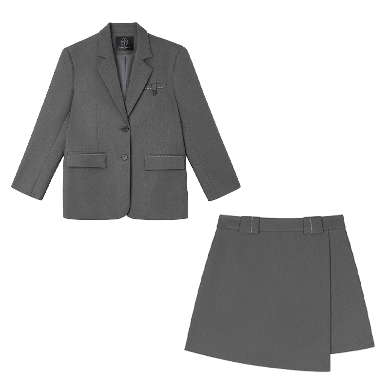 PAPERLLL辛间明线西装外套半裙套装女秋拱针西服上衣斜片a字裙裤