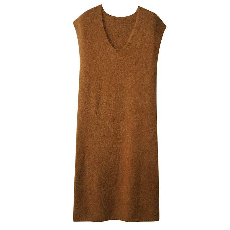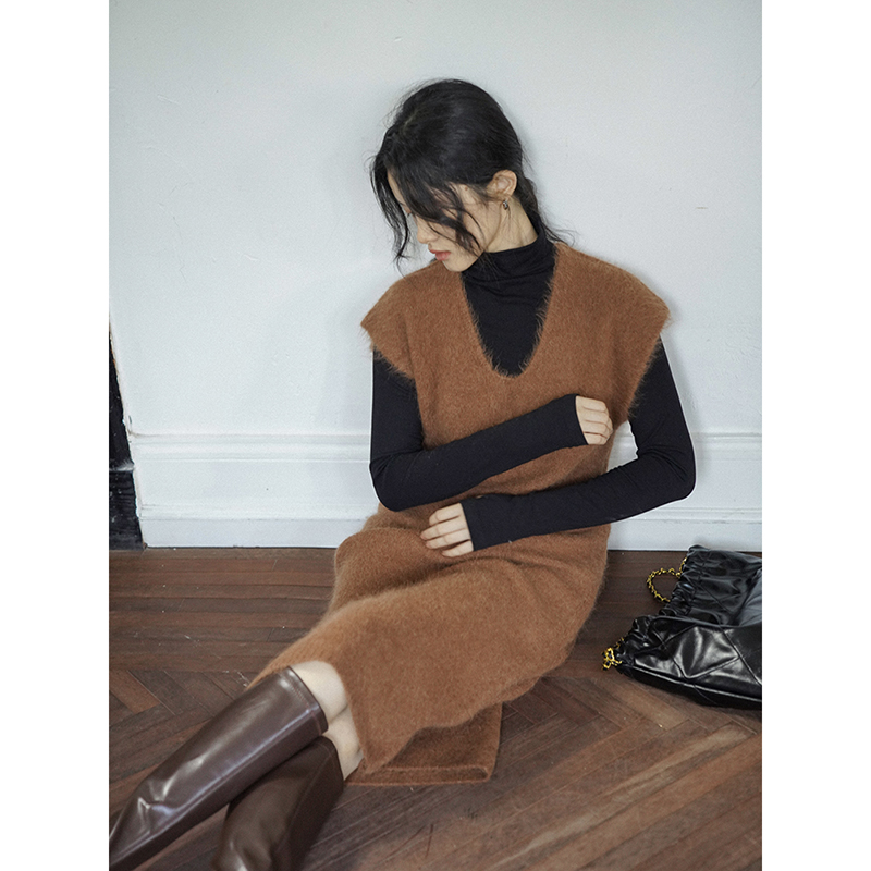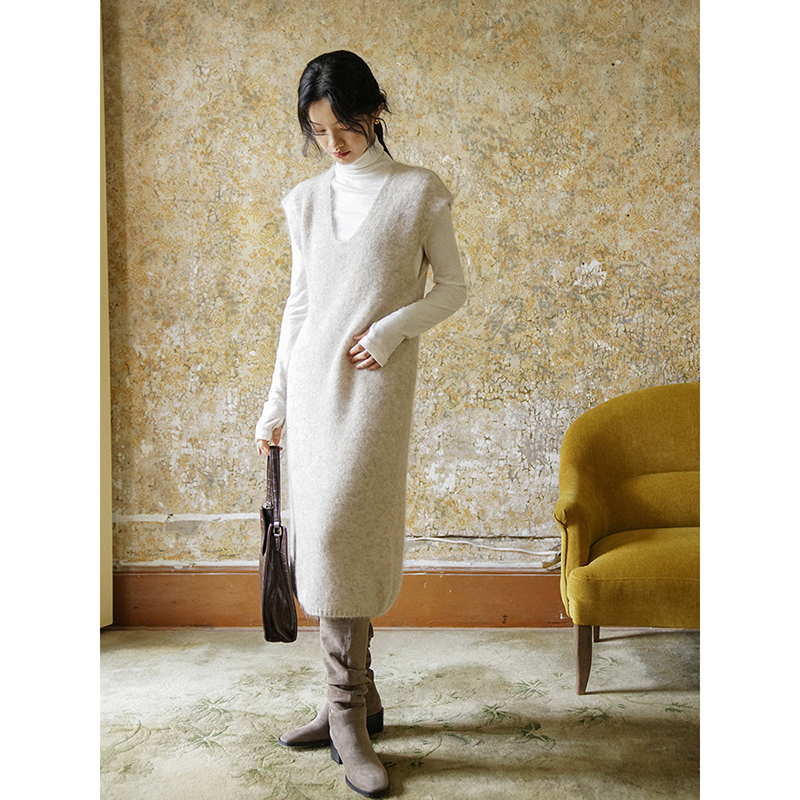 【到手259元】羊驼毛绒感温柔风V领背心针织毛衣连衣裙内搭裙子女