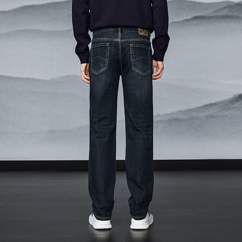 海澜之家山不在高高端磨毛牛仔裤男士25秋冬新加绒加厚直筒裤子男