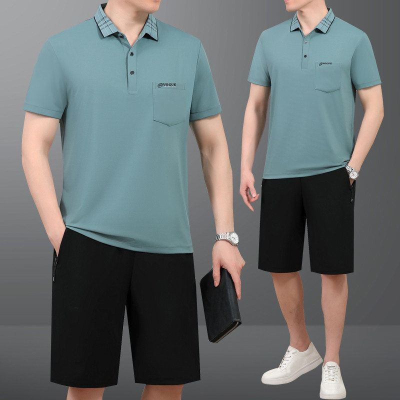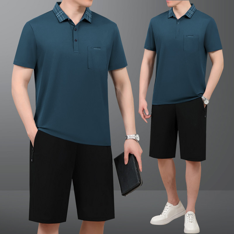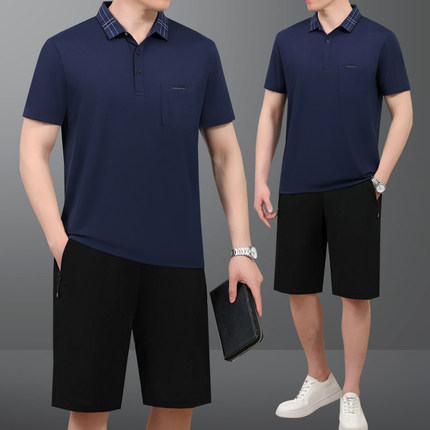 中年人男士爸爸夏装套装冰丝短袖t恤中老年男装休闲运动服男夏季