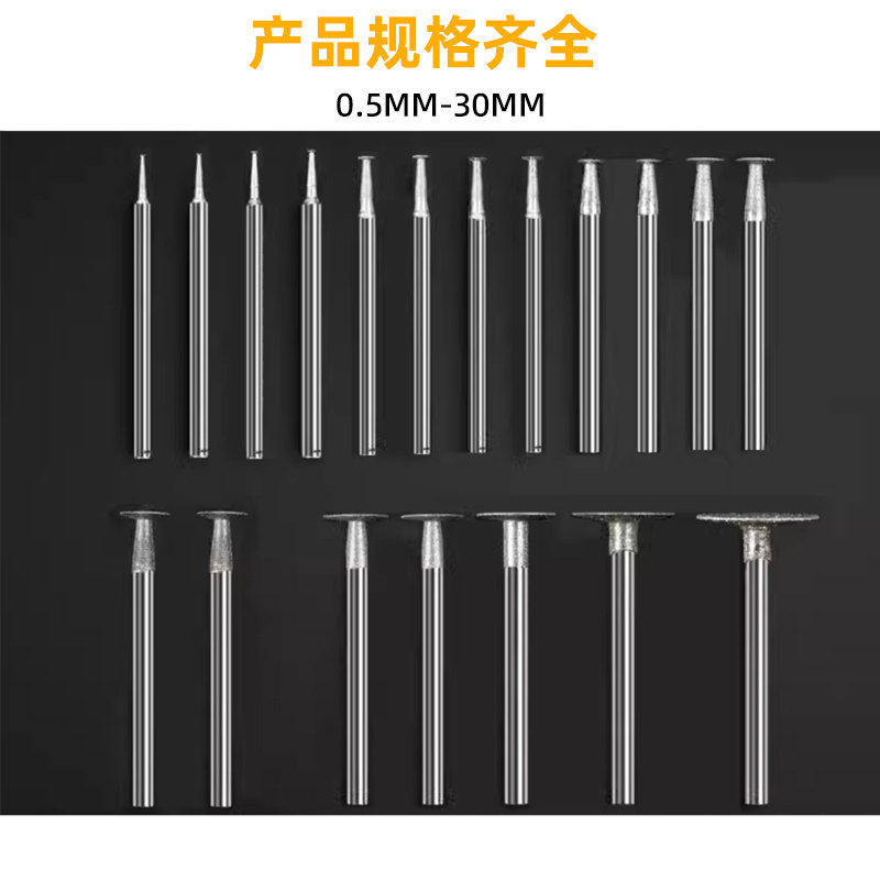 K针薄片钉头金刚砂磨头T型石材刻字翡翠磨针钩线玉雕石工具235柄