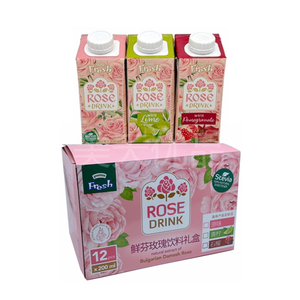保加利亚进口鲜芬娜fresh玫瑰果汁水石榴柠檬味植物饮料200ml礼盒