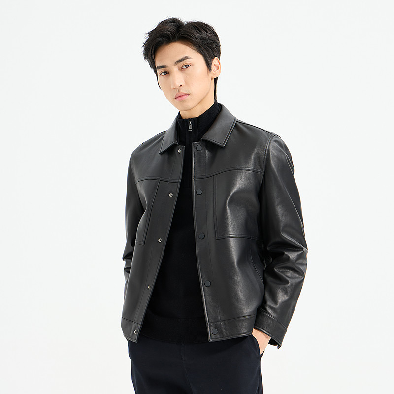 【内里充绒】利郎奥莱真皮皮衣2025冬季新款时尚休闲男士轻奢外套
