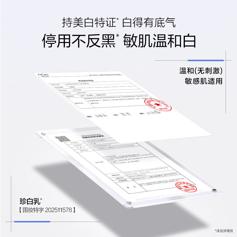 欧诗漫珍白因乳液光透亮白匀净精粹乳美白淡斑补水提亮肤色减黄女