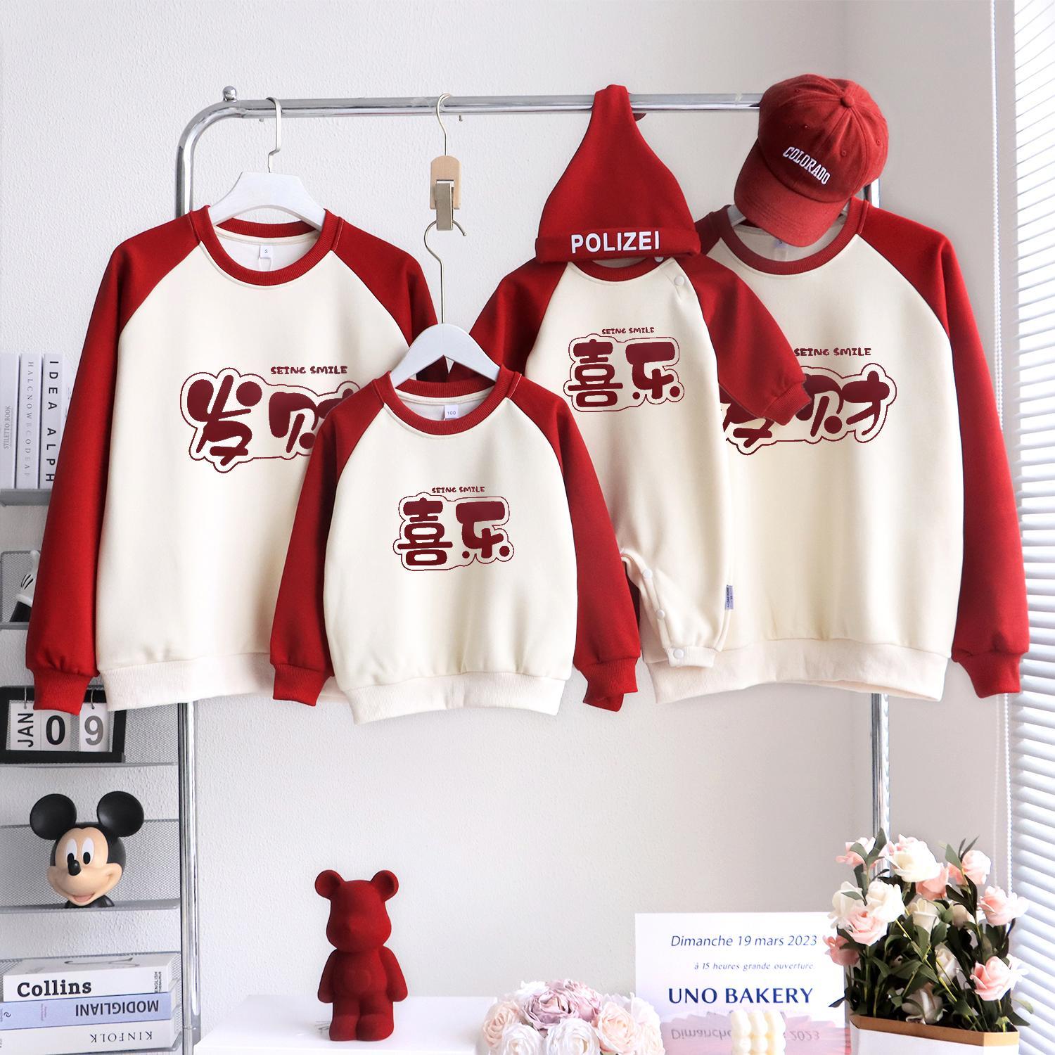 过年亲子装一家三四口卫衣秋冬款加绒加厚高端炸街母子母女拜年服