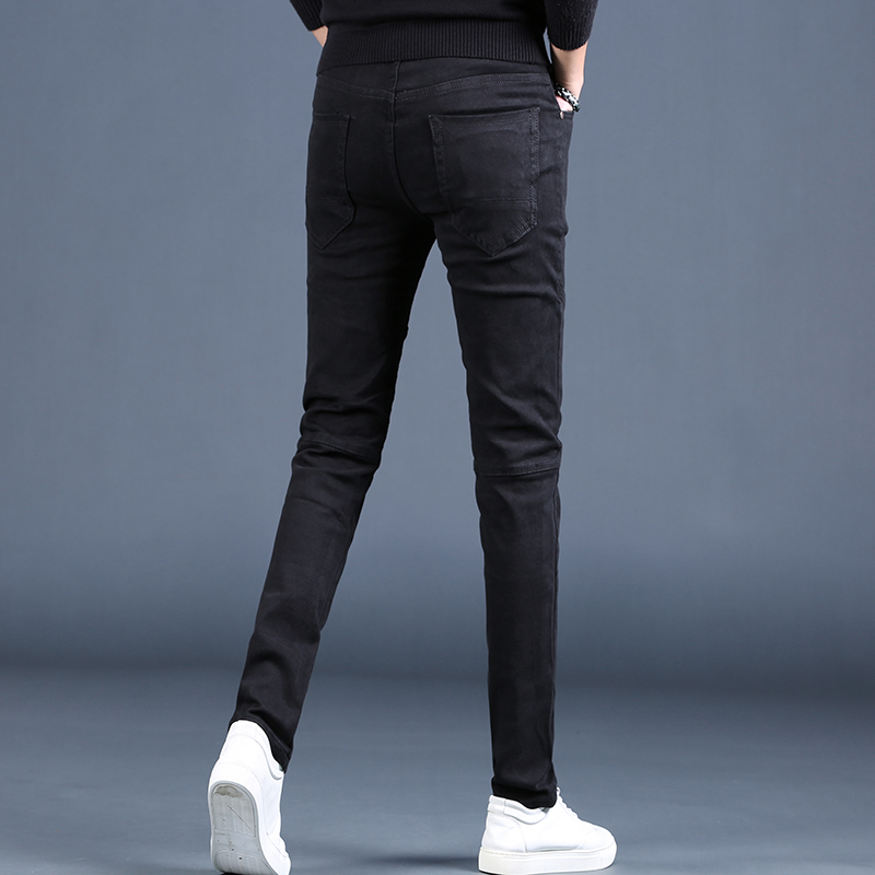 2025秋季个性拼接黑色牛仔裤男潮牌修身小脚男士潮流休闲长裤子潮