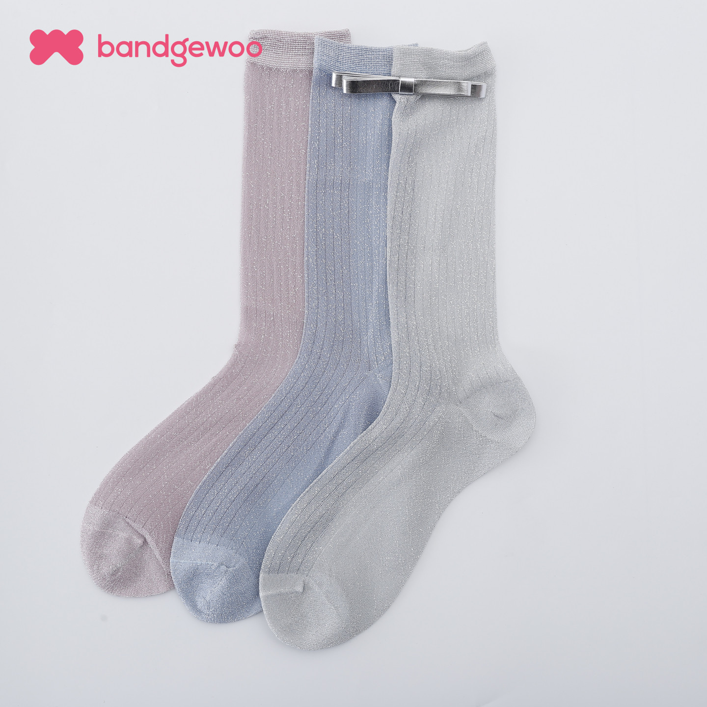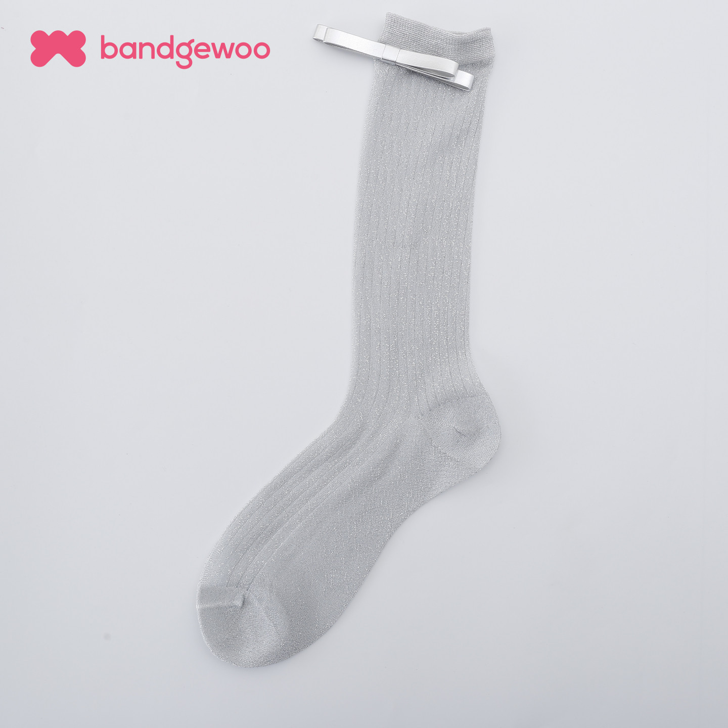 阪织屋女士甜美中筒袜法式浪漫立体蝴蝶结装饰时尚亮丝女袜