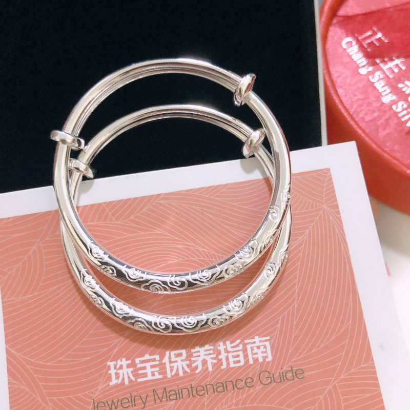 香港正生纯银男女宝宝实心推拉祥云手镯足银999儿童满月周岁生日