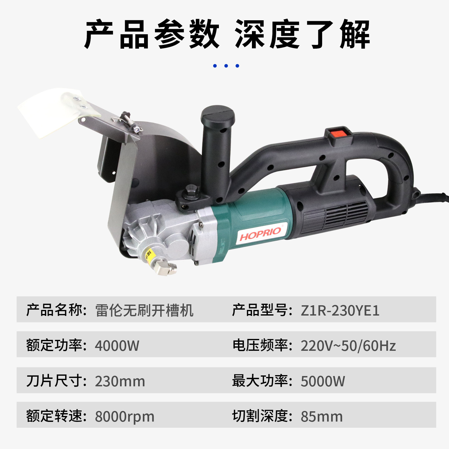 雷伦230无刷开槽机水电线槽安装大功率无尘切割机混凝土用多功能