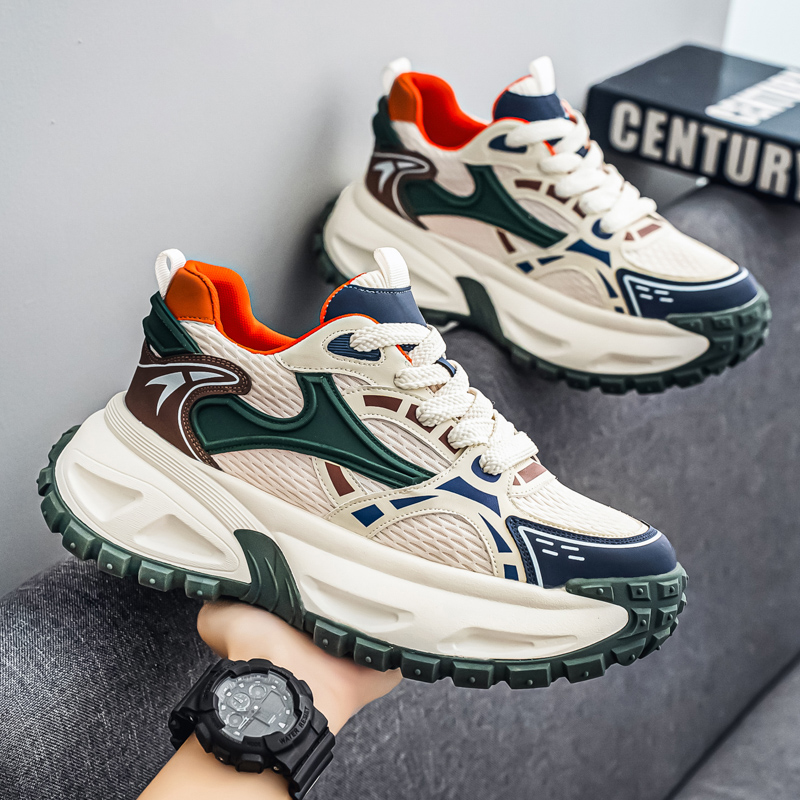 男鞋2025新款秋季防滑耐磨网面休闲鞋青少年运动跑步减震老爹潮鞋