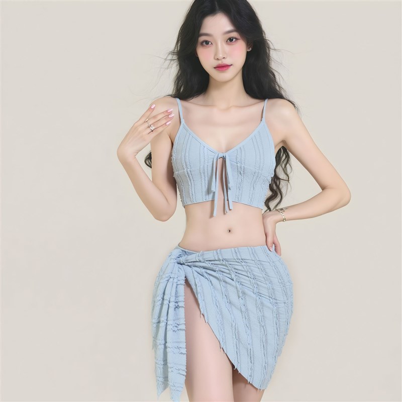 新款韩国ins小胸泳衣 女比基尼三件套纯欲风泡温泉木耳边吊带泳装