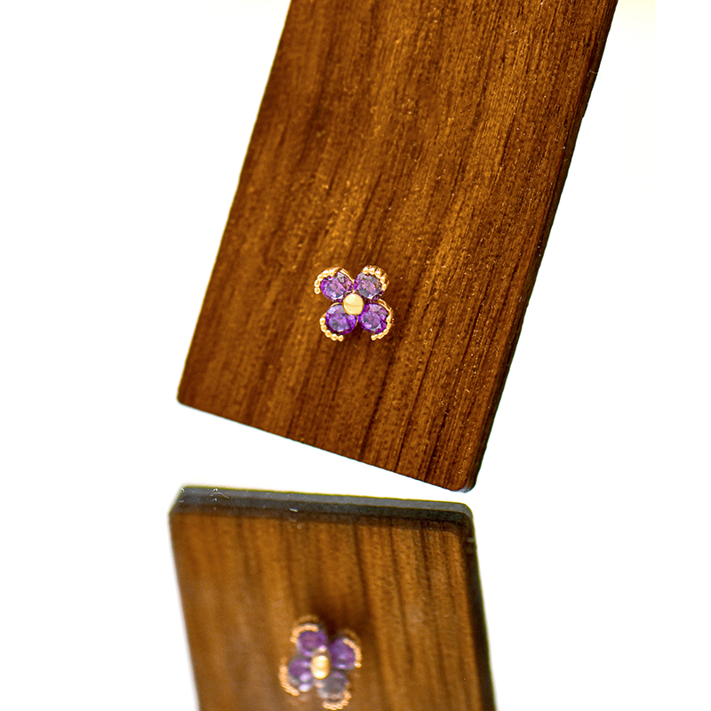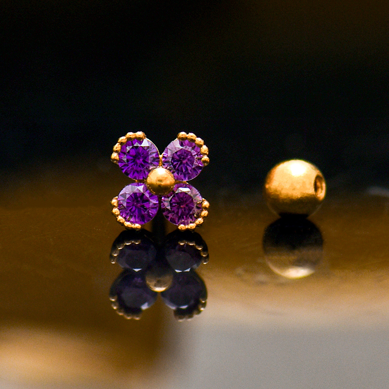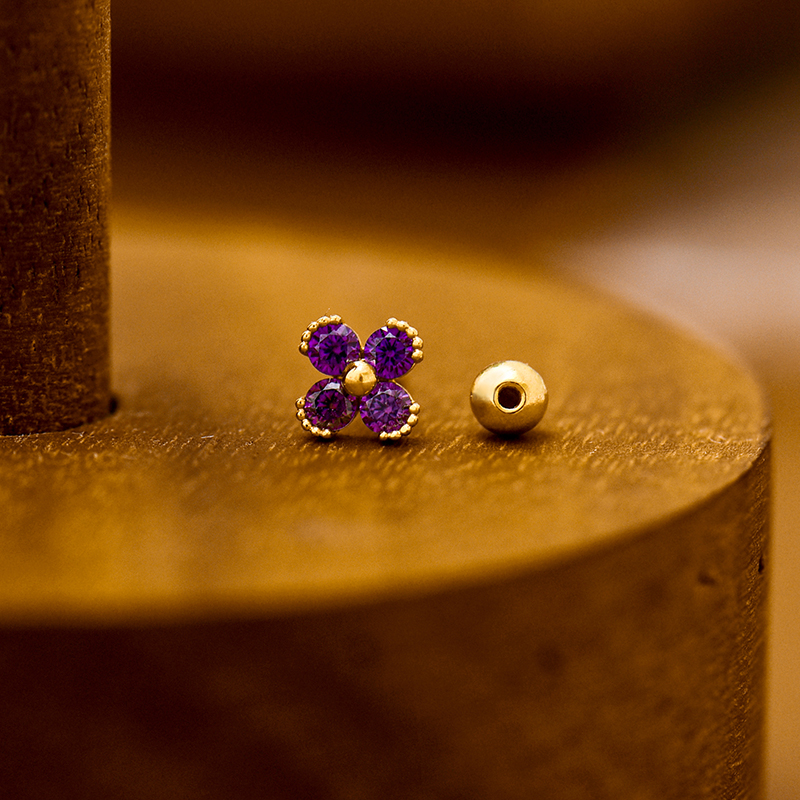 韩国时尚10K黄金耳钉女 镶钻小花螺纹螺丝耳饰通体K金养耳洞单只
