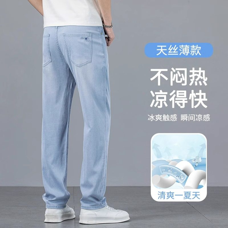 2025新款高端浅色冰丝超薄牛仔裤男夏季宽松直筒裤子天丝薄款男裤