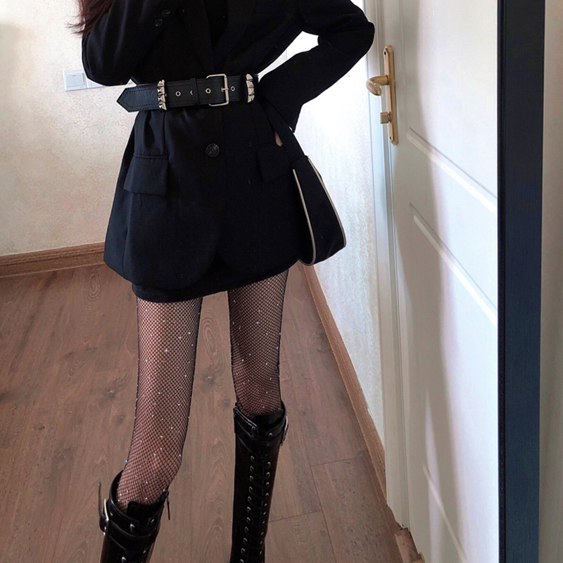 袜子女薄款黑丝袜夏季透气长袜连裤袜钻石潮流网眼性感瘦腿渔网袜