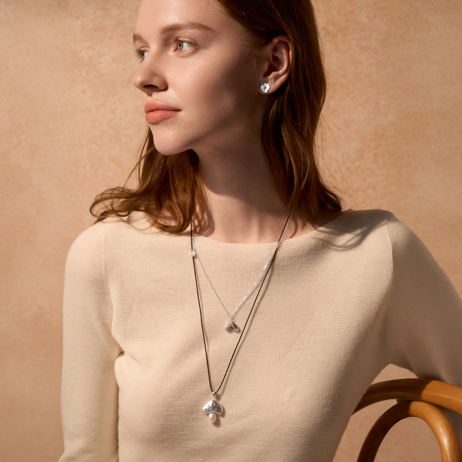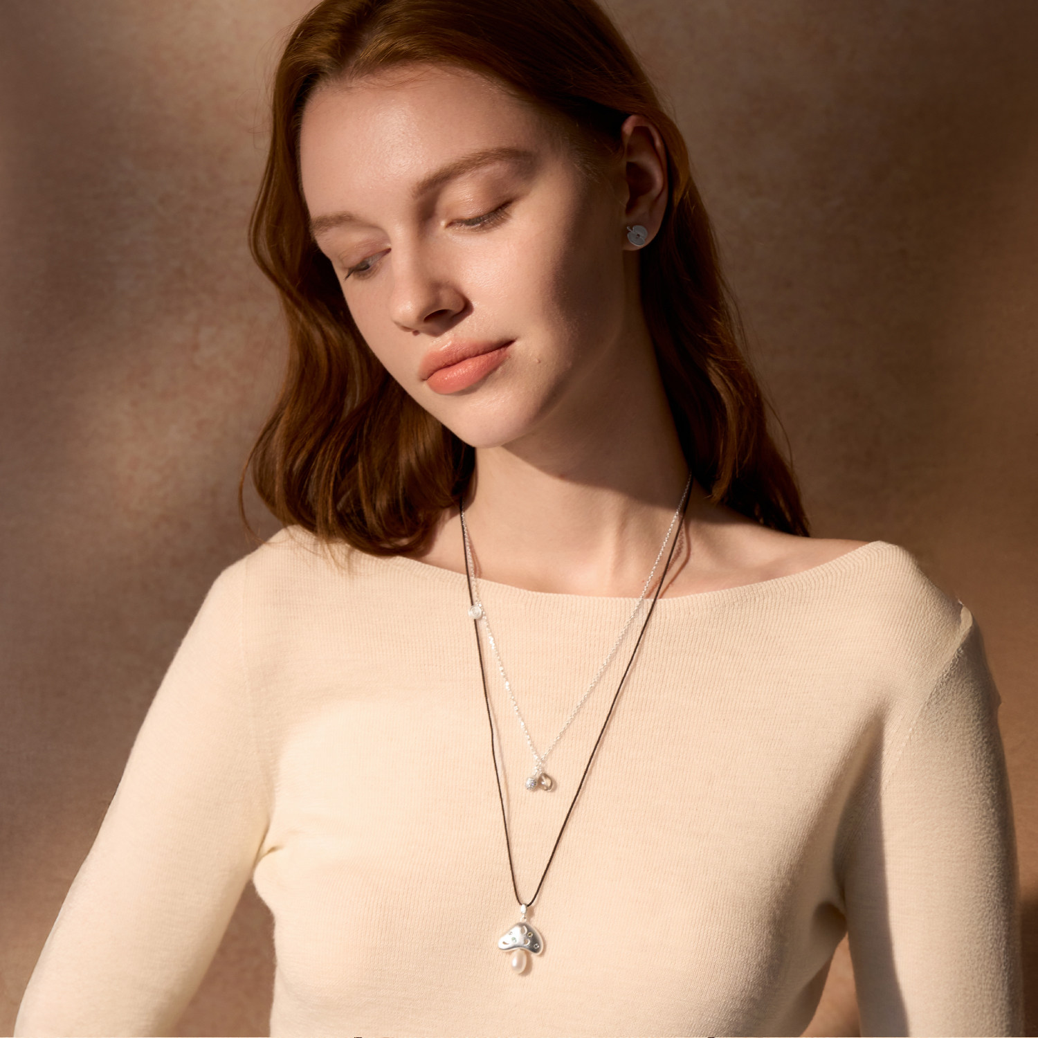 【明星同款】ARSIS小森林蘑菇双层叠链小众高级毛衣链轻奢项链女