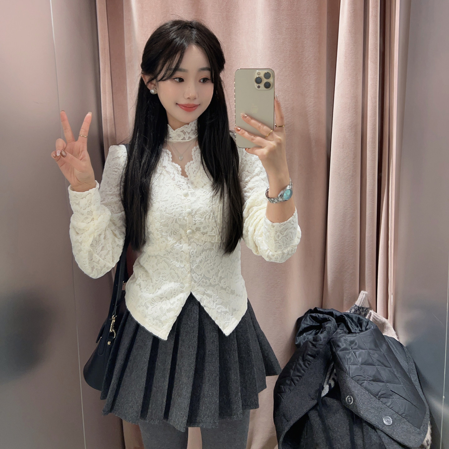 小小家小个子蕾丝加绒打底衫