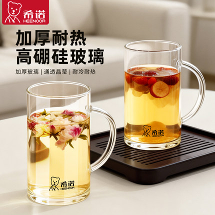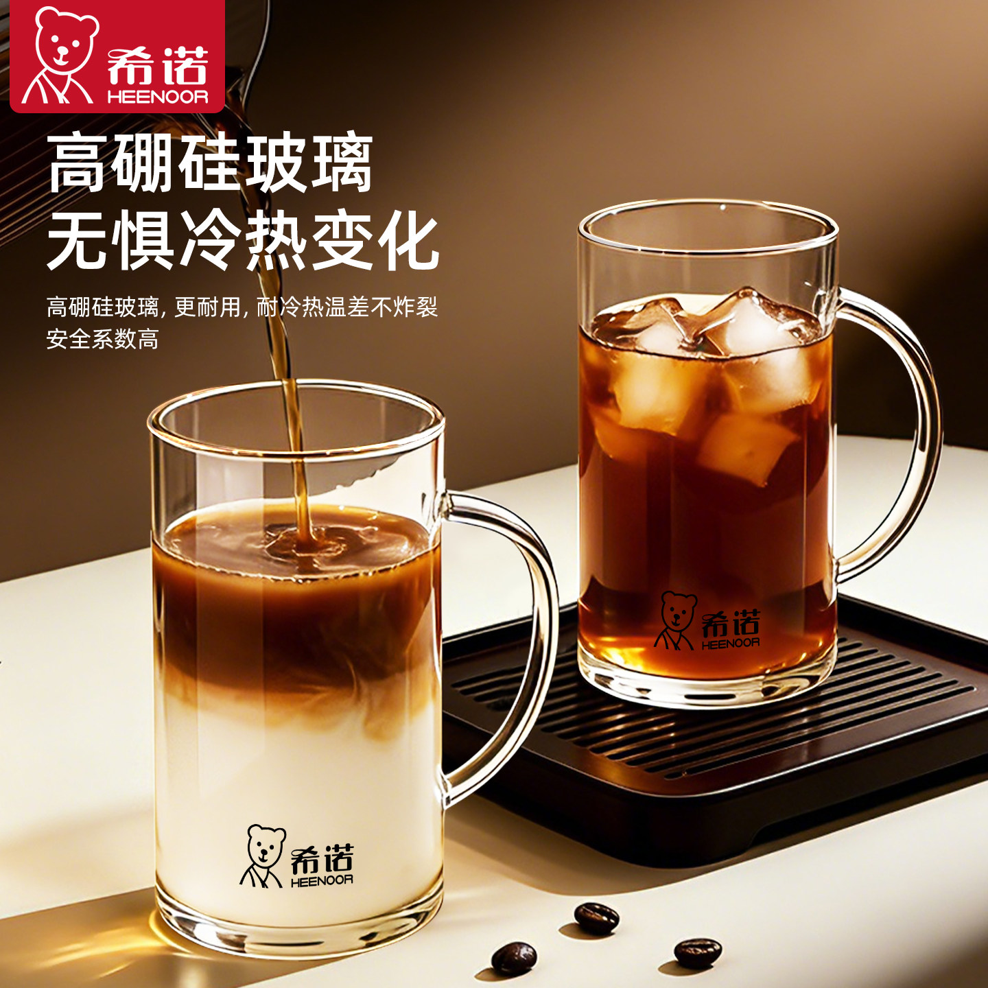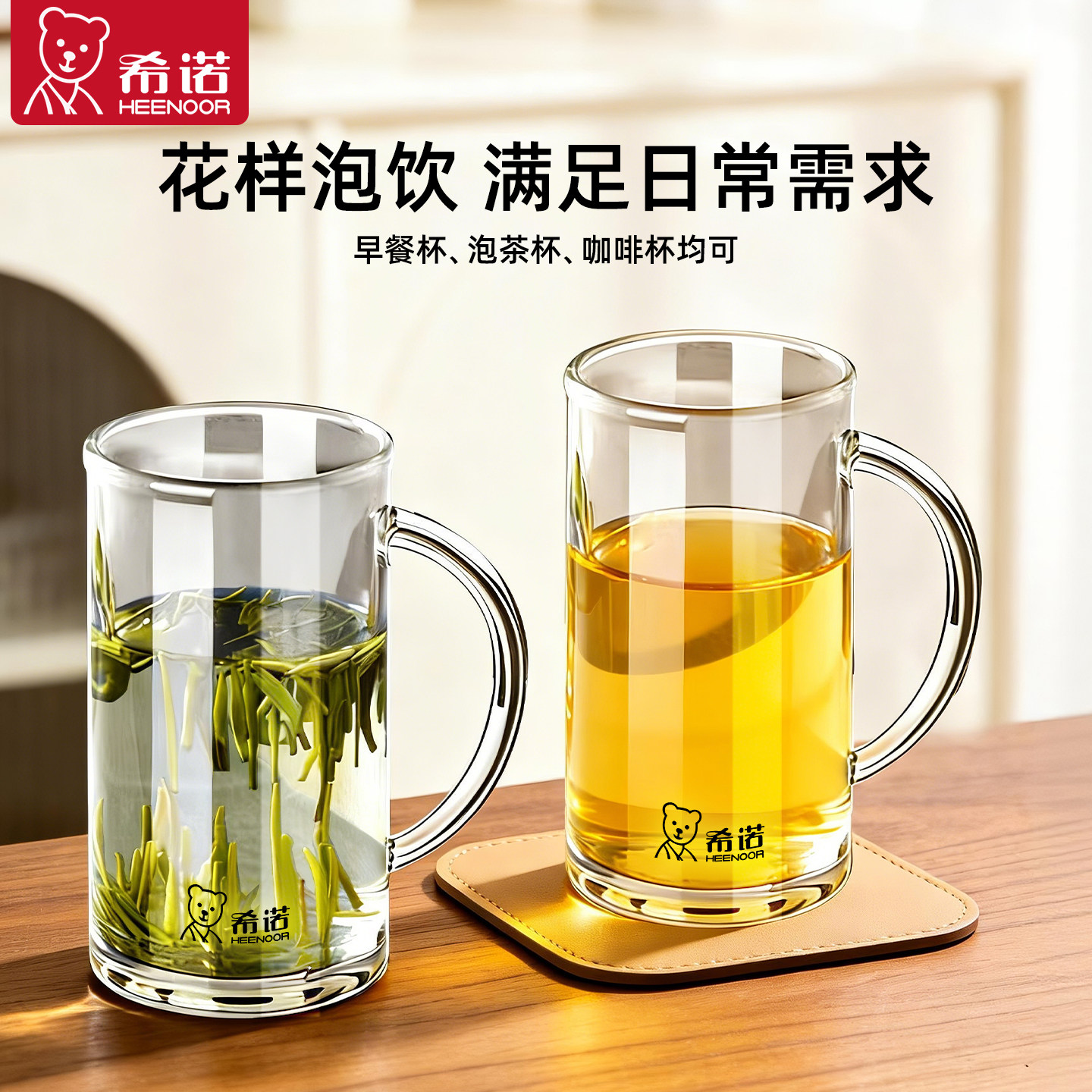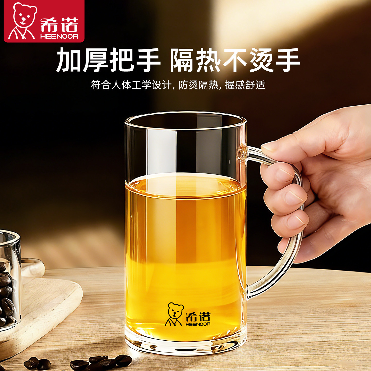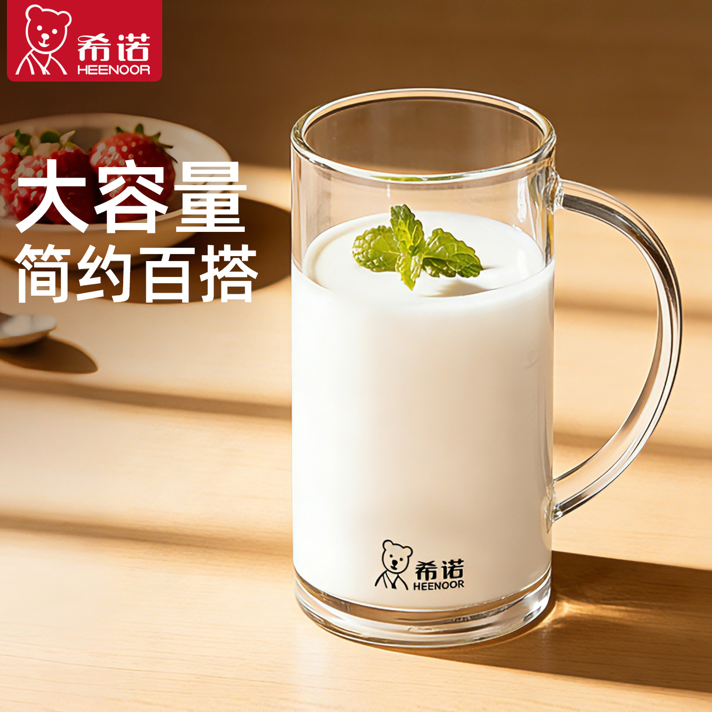 希诺家用泡茶杯玻璃杯带把手喝水杯子大容量加厚大号牛奶杯咖啡杯