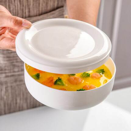 蒸蛋盘带盖子微波炉烤箱专用隔水炖碗蒸蛋碗陶瓷蒸碗骨瓷蒸餐盘加