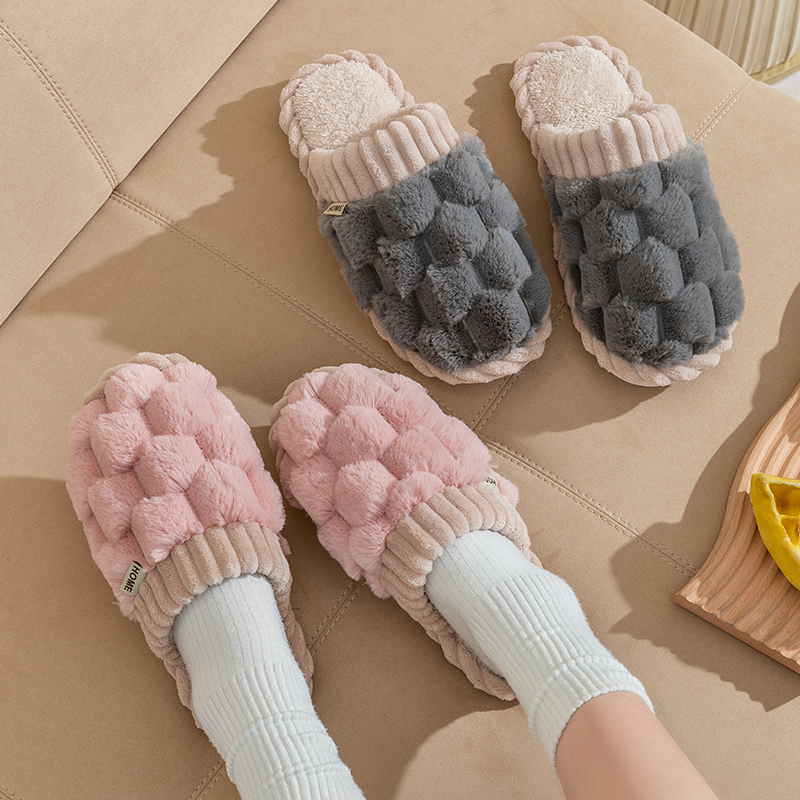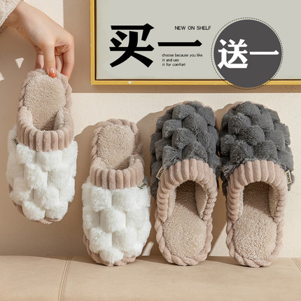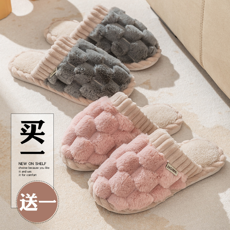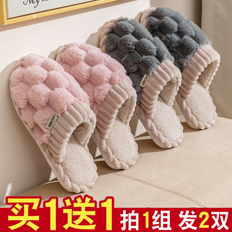 买一送一棉拖鞋女居家居秋冬季情侣室内家用防滑暖毛毛拖鞋男冬2