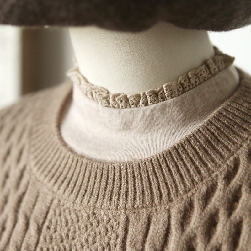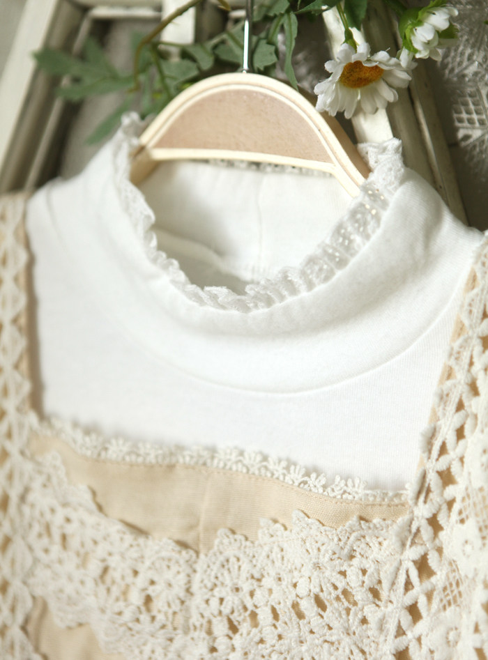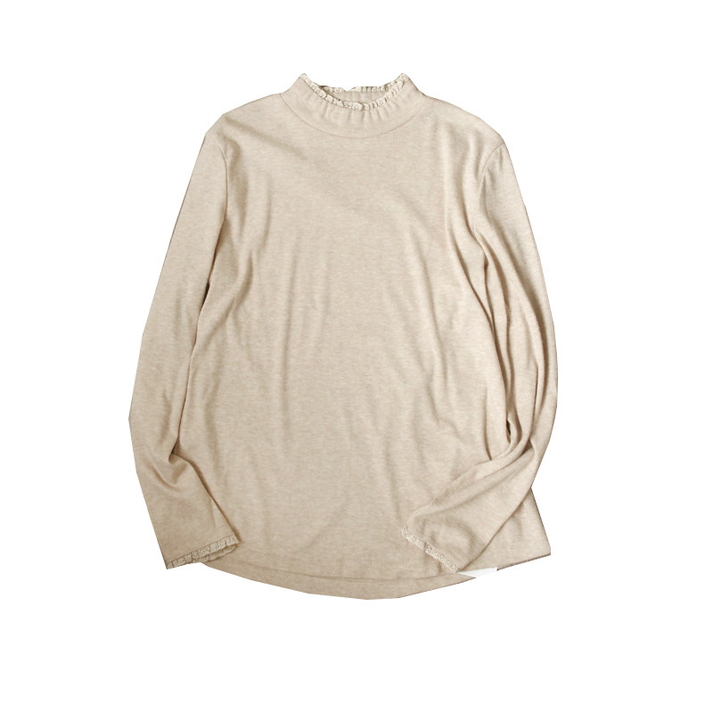 bi入款~秋冬舒适高弹磨毛棉打底衫 蕾丝花边领长袖T恤直筒上衣女