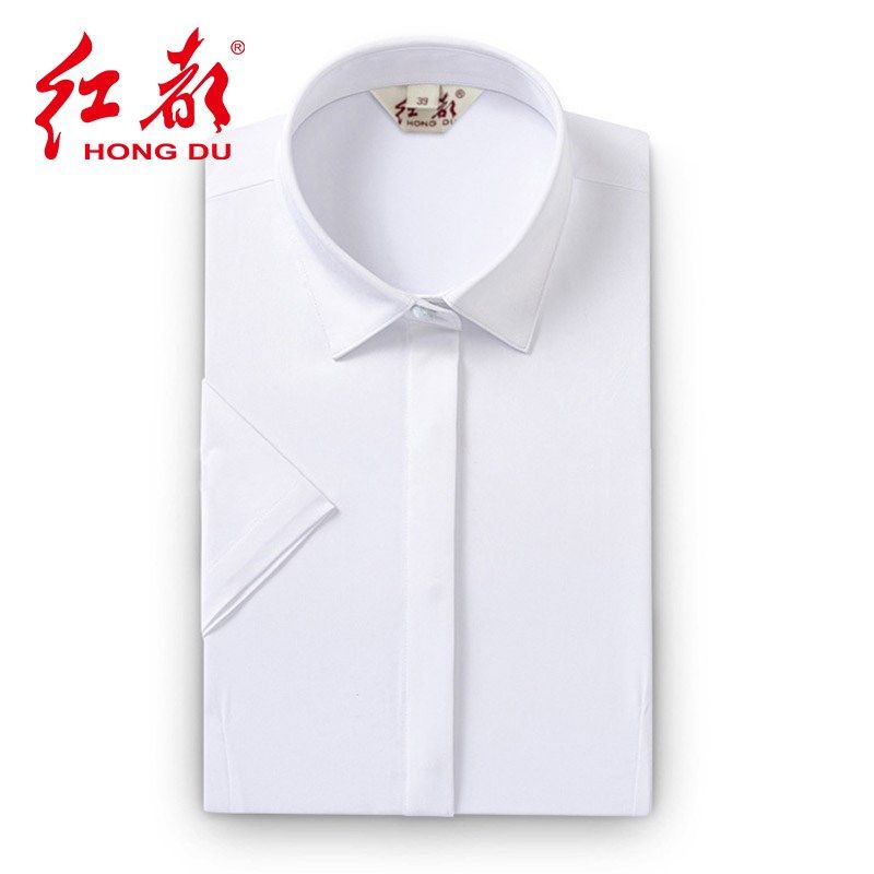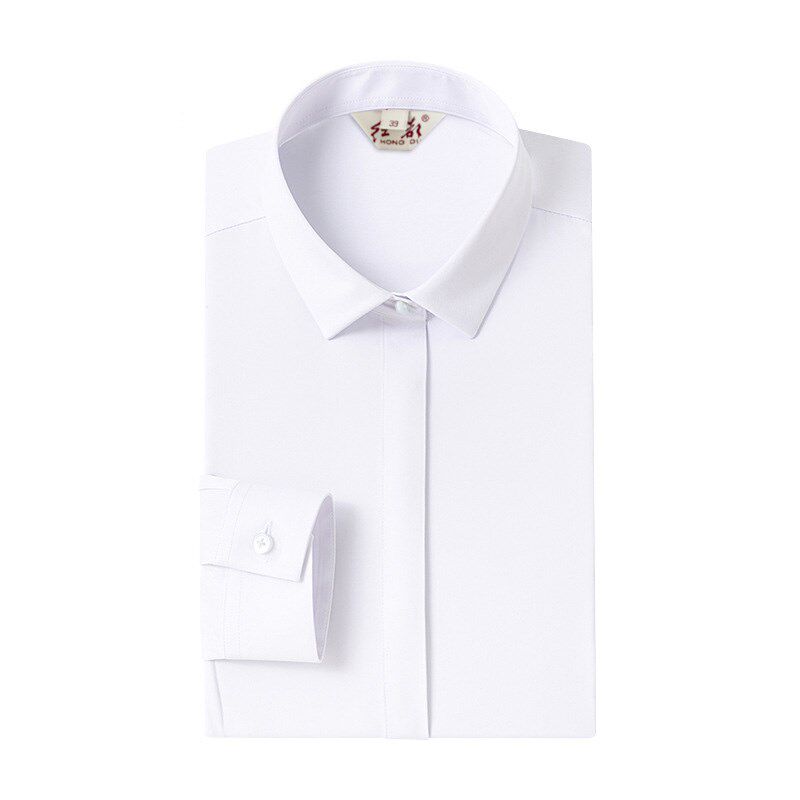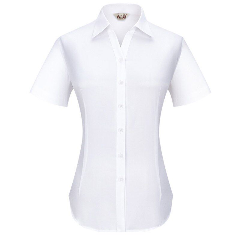 红都女士白色衬衫团购工作服职业正装上班舒适不透V领女衬衣