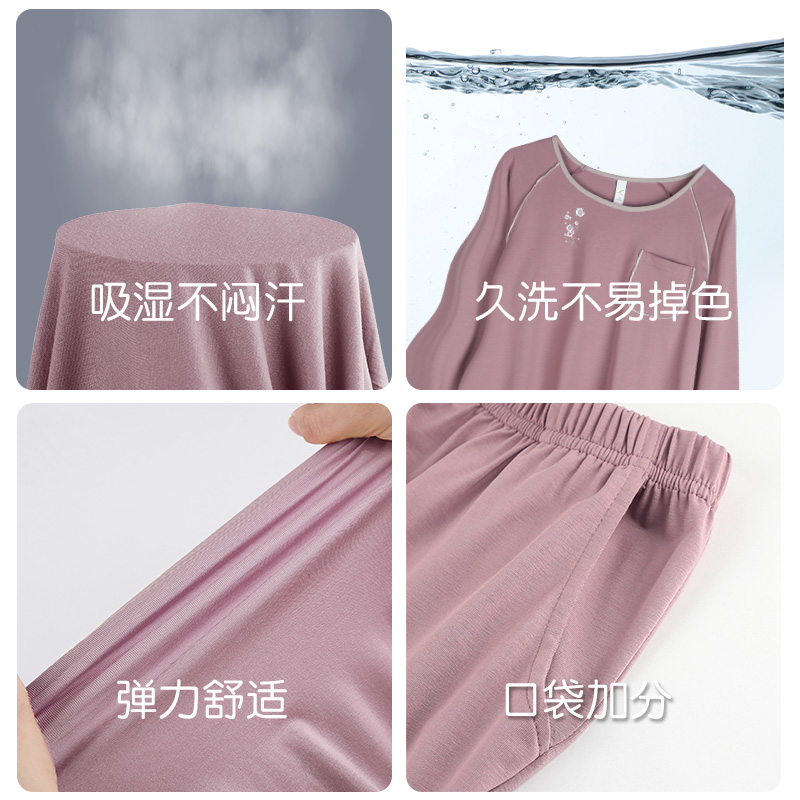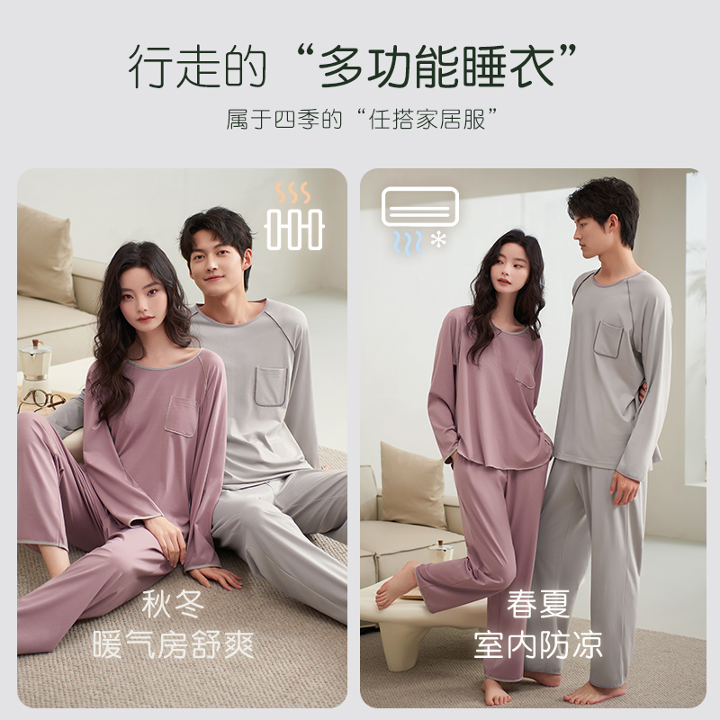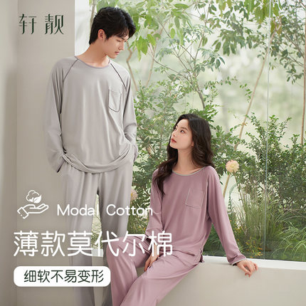 轩靓情侣睡衣女春秋季莫代尔棉薄款长袖男士休闲可外穿家居服套装