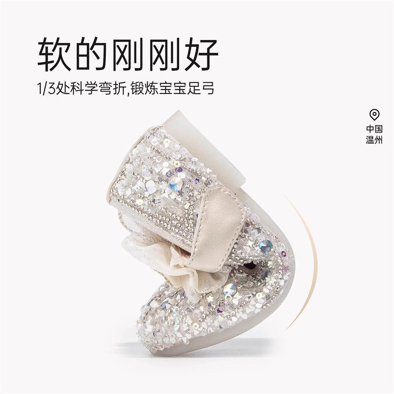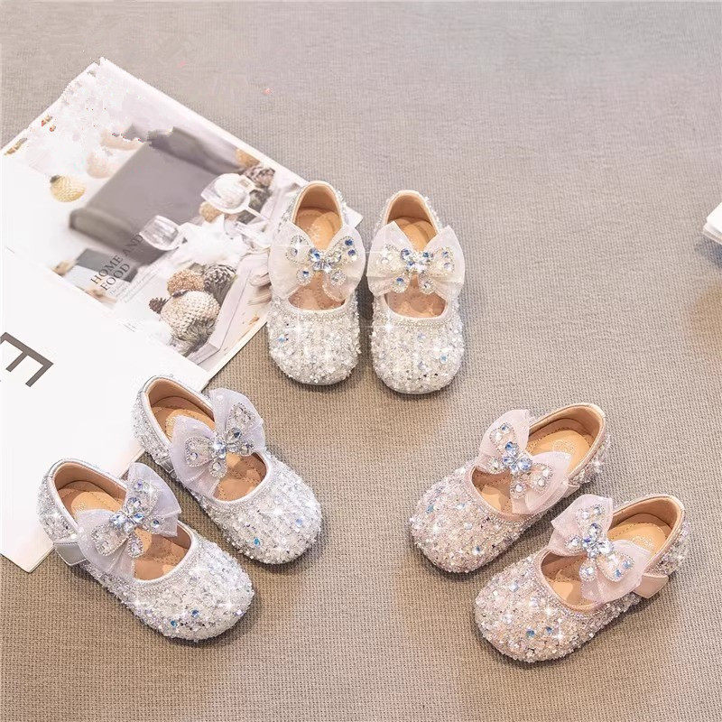 软底真皮女童水晶鞋2025年春秋新款中大童小香风闪亮小女孩公主鞋