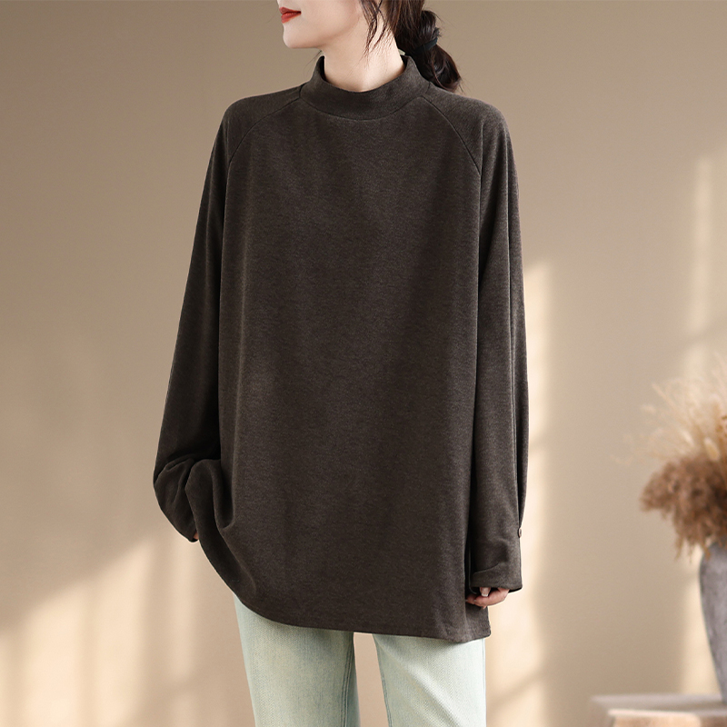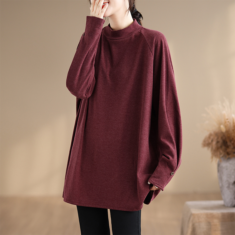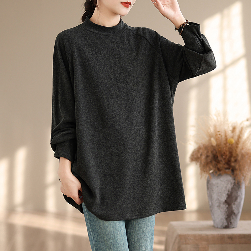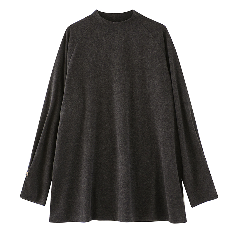 微胖长袖子秋冬新款半高领套头纯色休闲长袖T恤衫宽松大码上衣女