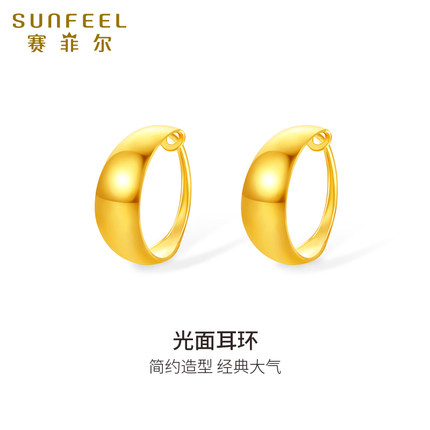 赛菲尔足金999.9黄金耳环耳圈 光面耳环大气富贵时尚耳饰送妈妈