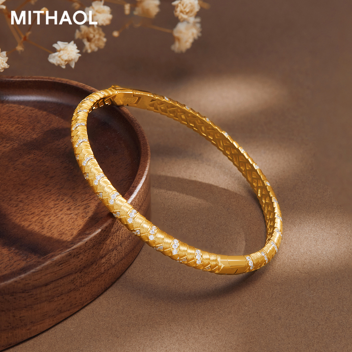 MITHAOL拉丝麦穗编织手镯女 轻奢小众高级感镶钻中古金色手饰银镀